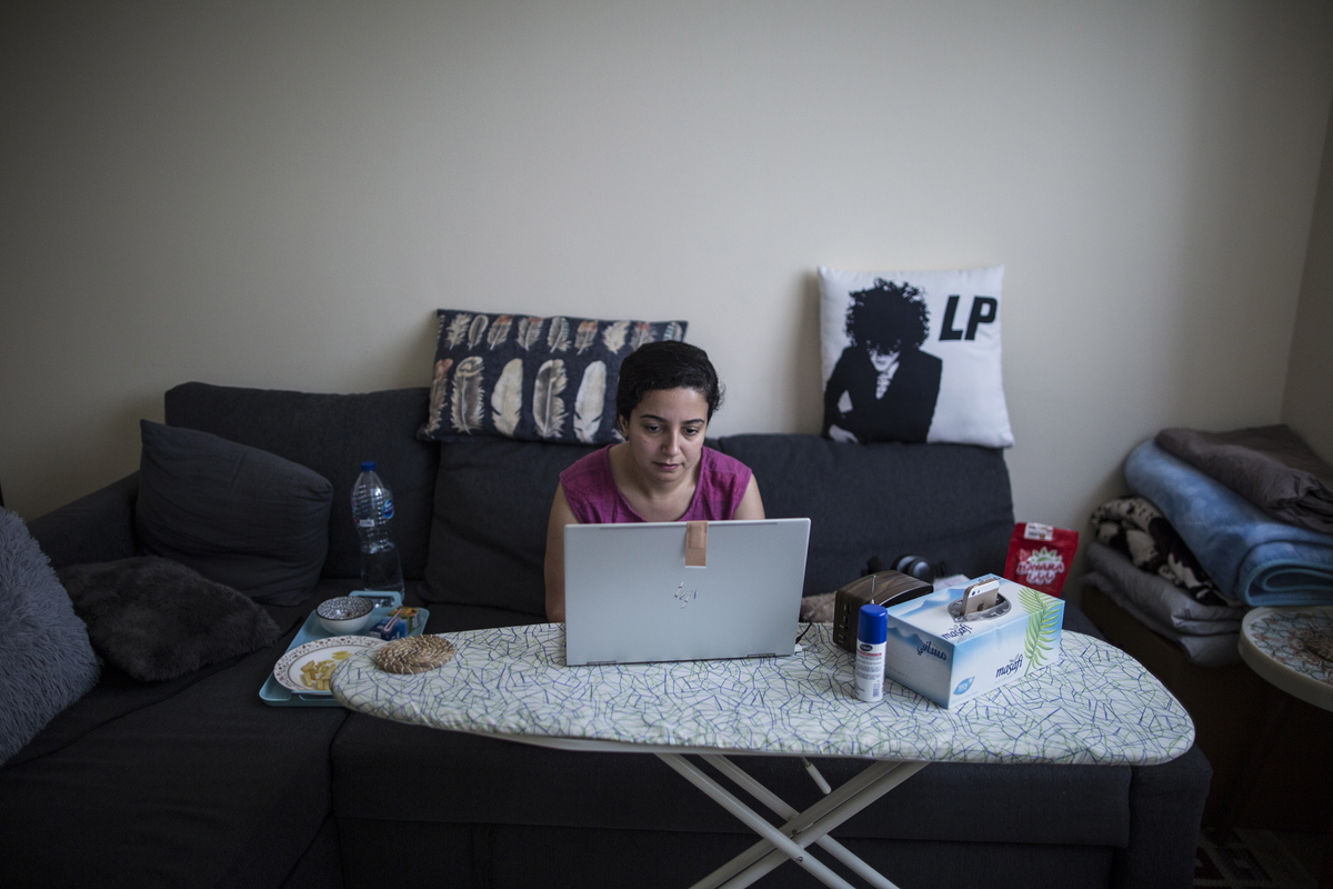 Η Sherine Thabet, 28 χρονών, που είναι κειμενογράφος στο δημιουργικό τμήμα εταιρείας, εργάζεται αυτόν το καιρό από το σπίτι της στο Sharjah, στα Ηνωμένα Αραβικά Εμιράτα. Οι περισσότερες εταιρείες, συμπεριλαμβανομένης της ομοσπονδιακής κυβέρνησης των Εμιράτων, επιλέγουν την τηλεργασία για να περιορίσουν την εξάπλωση του coridavirus. Η Sherine λέει: Mου λείπει το γραφείο μου και οι σχέσεις μεταξύ των συναδέλφων μου, δεν μπορώ να κινηθώ όταν μιλάω ή να πίνω καφέ με έναν φίλο. Αυτό είναι το πιο αρνητικό πράγμα για την εργασία στο σπίτι. Υπάρχουν όμως ορισμένα θετικά σημεία, όπως ότι οι συνεδρίες εργασίας ανάμεσα στους υπαλλήλους, έχουν γίνει πιο αποτελεσματικές και πιο οργανωμένες. EPA / Mahmoud Khaled