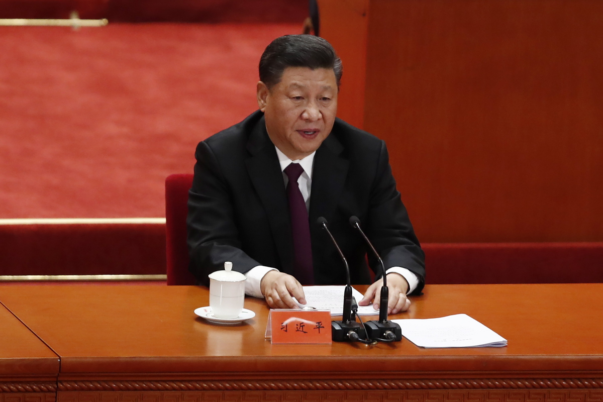 epa07237876 Chinese President Xi Jinping delivers a speech during a celebration meeting to celebrate the 40th anniversary of China's reform and opening up at the Great Hall of the People in Beijing, China, 18 December 2018. EPA/WU HONG