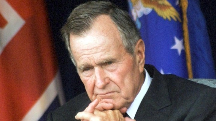 Ο νύν πρόεδρος των ΗΠΑ Ντόναλντ Τραμπ χαιρέτισε την «αταλάντευτη ηγεσία» του προκατόχου του, ο οποίος θα μείνει επίσης στην Ιστορία επειδή έστειλε τις αμερικανικές δυνάμεις να απελευθερώσουν το Κουβέιτ μετά την εισβολή στη χώρα αυτή των ιρακινών στρατευμάτων του Σαντάμ Χουσέιν.