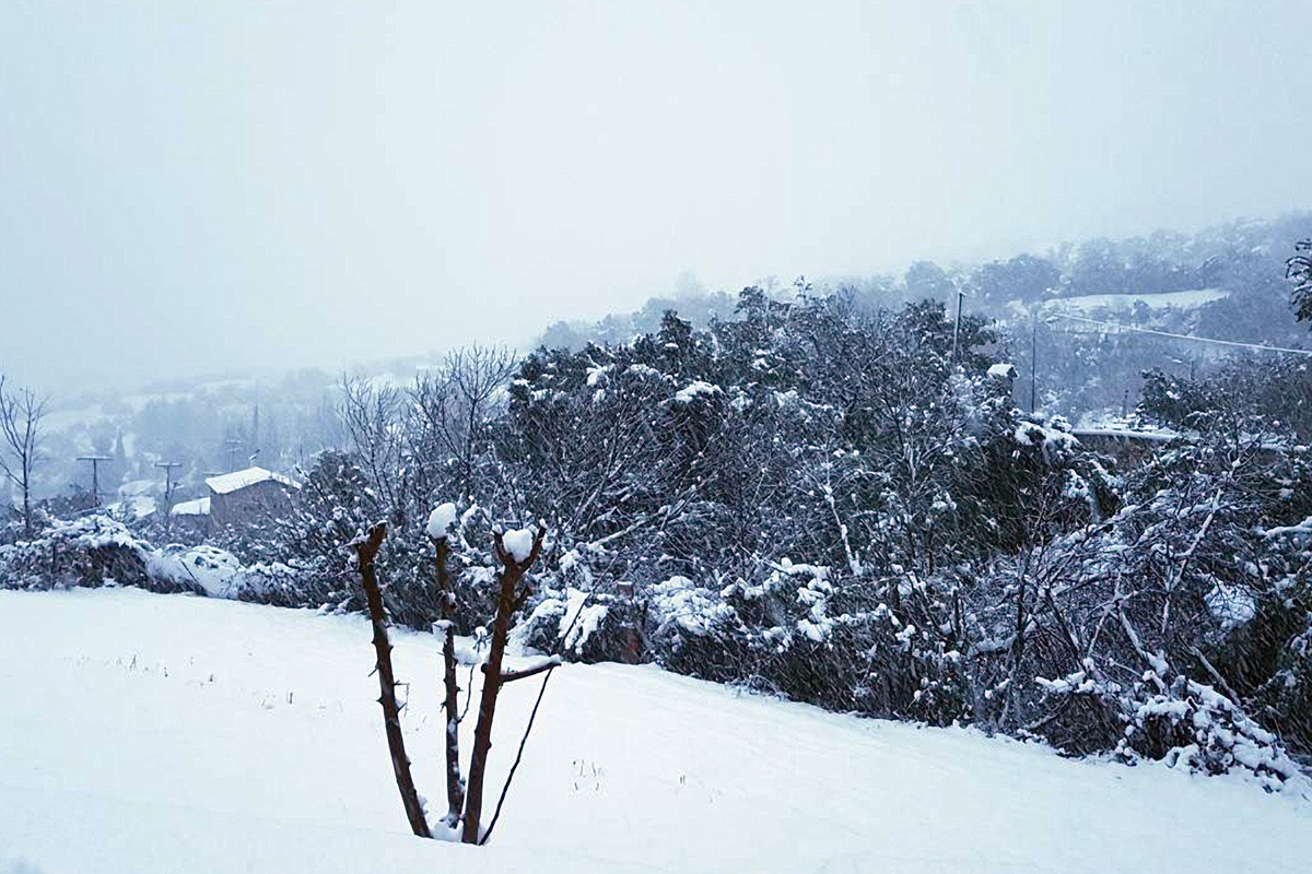 Στα ορεινά του Αλμυρού το χιόνι έχει φτάσει ήδη τα 30 εκατοστά στην Ανάβρα, αλλά ο δρόμος αποχιονίζεται και παραμένει ανοιχτός.