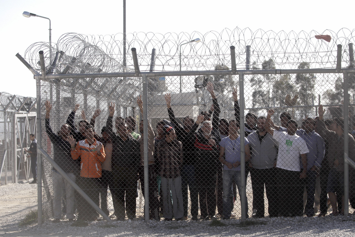 Μετανάστες φωνάζουν κατά τη διάρκεια συγκέντρωσης διαμαρτυρίας ενάντια στα κέντρα κράτησης μεταναστών, στο κέντρο κράτησης της Αμυγδαλέζας, Σάββατο 21 Φεβρουαρίου 2015. ΑΠΕ-ΜΠΕ/ΑΠΕ-ΜΠΕ/ΓΙΑΝΝΗΣ ΚΟΛΕΣΙΔΗΣ