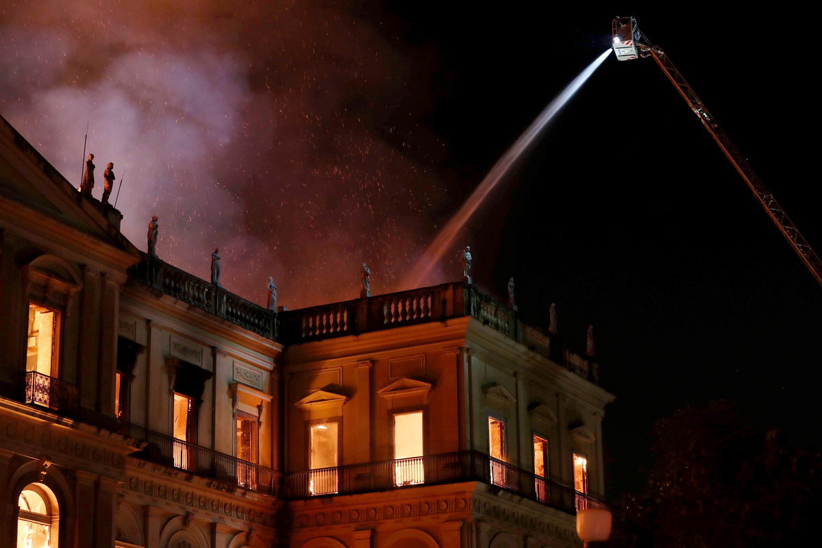 epaselect epa06993681 Firefighters work to contain a fire at the National Museum of Rio de Janeiro in Rio de Janeiro, Brazil, 02 September 2018. The museum houses some 20 million pieces that date back to the Brazilian imperial era. Authorities have said the cause of the fire is still unknown. No injuries have been reported. EPA/MARCELO SAYAO