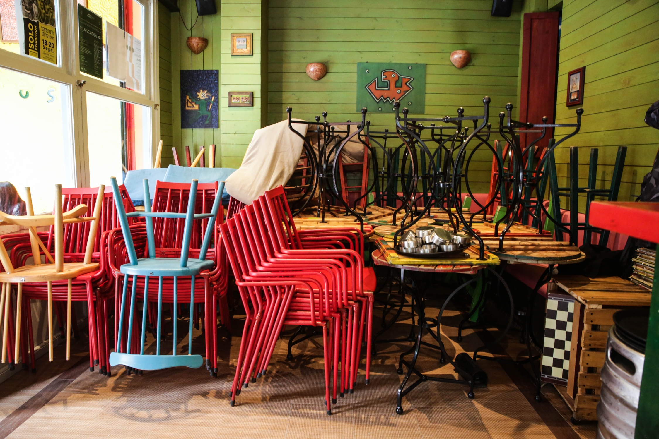 Chairs and tables of a closed bar during the first day of closed restaurants and bars to the public in order to prevent the spread of the coronavirus (COVID-19), in Athens, Greece, November 3, 2020. / Πρώτη μέρα εφαρμογής μέτρου του κλείσιματος καταστημάτων εστίασης και διασκέδασης στo πλαίσιo των νέων μέτρων αποτροπής εξάπλωσης του κορωναϊού (COVID-19), Αθήνα, 3 Νοεμβρίου, 2020.