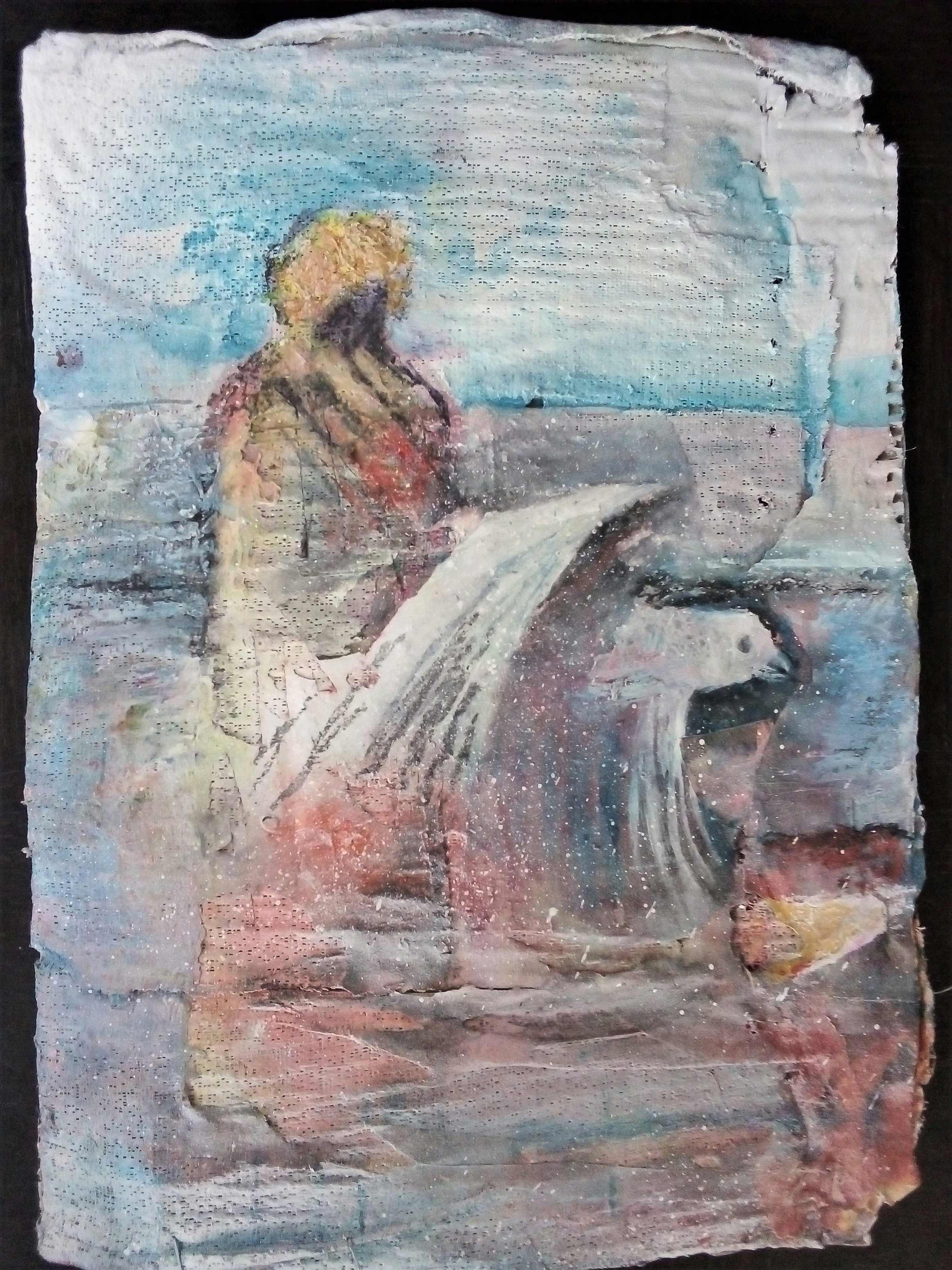 Η γλώσσα της εικαστικού, αρθρώνεται μέσα από σύμβολα και επαναλαμβανόμενα μοτίβα. Χαρακτηριστικό παράδειγμα στη νέα αυτή σειρά, o γλάρος που εμφανίζεται ως κεντρικό στοιχείο των συνθέσεων της.
