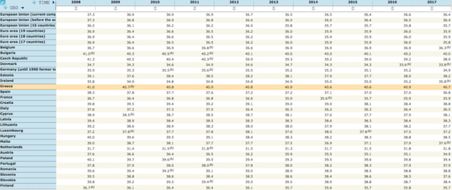 Σε ότι αφορά την Ελλάδα η διαφορά είναι ανεπαίσθητη (0,2 ώρες) όμως η χώρα μας όπως φαίνεται από το πιο πάνω διάγραμμα έχει τις περισσότερες ώρες εργασίας (40,7 ώρες) εντός της Ευρωπαϊκής Ένωσης (σ.σ. μέσος όρος των 19 χωρών της ευρωζώνης ήταν 35,9 ώρες το 2017).