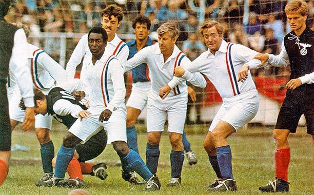 Από τις πιο γνωστές ποδοσφαιρικές ταινίες, που γύρισε ο Τζον Χιούστον (Το γεράκι της Μάλτας, Ο άνθρωπος που ήθελε να γίνει βασιλιάς) το 1981, με πρωταγωνιστές τον Μάικλ Κέιν και τον Σιλβέστερ Σταλόνε, αλλά και τον Πελέ και μια σειρά από γνωστούς βετεράνους ποδοσφαιριστές (Μπόμπι Μουρ, Οσβάλντο Αρντίλες, Ντέινα, Γουόρκ κα). Το στόρι της ταινίας, σε ένα ναζιστικό στρατόπεδο συγκέντρωσης, όπου υπάρχουν πολλοί ποδοσφαιριστές ανάμεσα στους κρατούμενους, οι Γερμανοί σχεδιάζουν ένα παιχνίδι στο Παρίσι με τη δική τους ομάδα, για λόγους προπαγάνδας. Οι κρατούμενοι θα δεχθούν, για να σώσουν κάποιους ποδοσφαιριστές κρατούμενους από την ανατολική Ευρώπη, που ήταν σε άθλια κατάσταση, αλλά και γιατί σχεδιάζουν μία θεαματική απόδραση. Ανάμεσα στις σκηνές που έχουν μείνει στην ιστορία, το ψαλιδάκι του Πελέ στο παιχνίδι. Μεγάλη πλάκα έχει και η ασχετοσύνη του Σταλόνε με την μπάλα, καθώς αναγκαστικά μπαίνει στο παιχνίδι, για να γίνει η απόδραση.