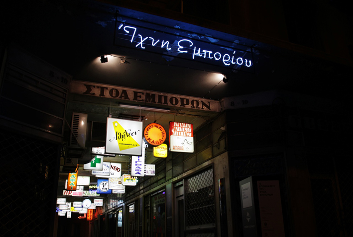 Η ομάδα Ίχνη Εμπορίου προσκαλεί καλλιτέχνες, σχεδιαστές, τεχνίτες, επιμελητές, αρχιτέκτονες, δεξιοτέχνες, γραφίστες, μουσικούς, μάγειρες, εφευρέτες, μικρές επιχειρηματικές συμπράξεις και κάθε είδους νέους δημιουργούς, να μεταφέρουν την έδρα τους στη Στοά Εμπόρων και να χρησιμοποιήσουν τα κενά καταστήματά της ως πειραματικά εργαστήρια παραγωγής (laboratories) και διερεύνησης νέων ιδεών, αλλά παράλληλα και ως εκθετήρια προβολής του έργου τους (showrooms).