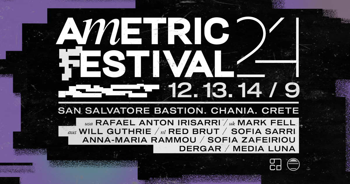Η ομάδα του OCD Project και η experimental δισκογραφική εταιρία Coherent States διοργανώνουν για τρίτη συνεχή χρονιά το μουσικό φεστιβάλ Ametric Festival, το τριήμερο 12, 13 & 14 Σεπτεμβρίου 2024 στον ιδιαίτερο χώρο του Προμαχώνα San Salvatore στα Χανιά, εκεί που η Ενετική αρχιτεκτονική δημιουργεί μια μοναδική και απόκοσμη συναυλιακή συνθήκη, απολύτως ταιριαστή για την ηχητική και αισθητική ανάδειξη του σύγχρονου & πειραματικού χαρακτήρα της μουσική ταυτότητας του φεστιβάλ.