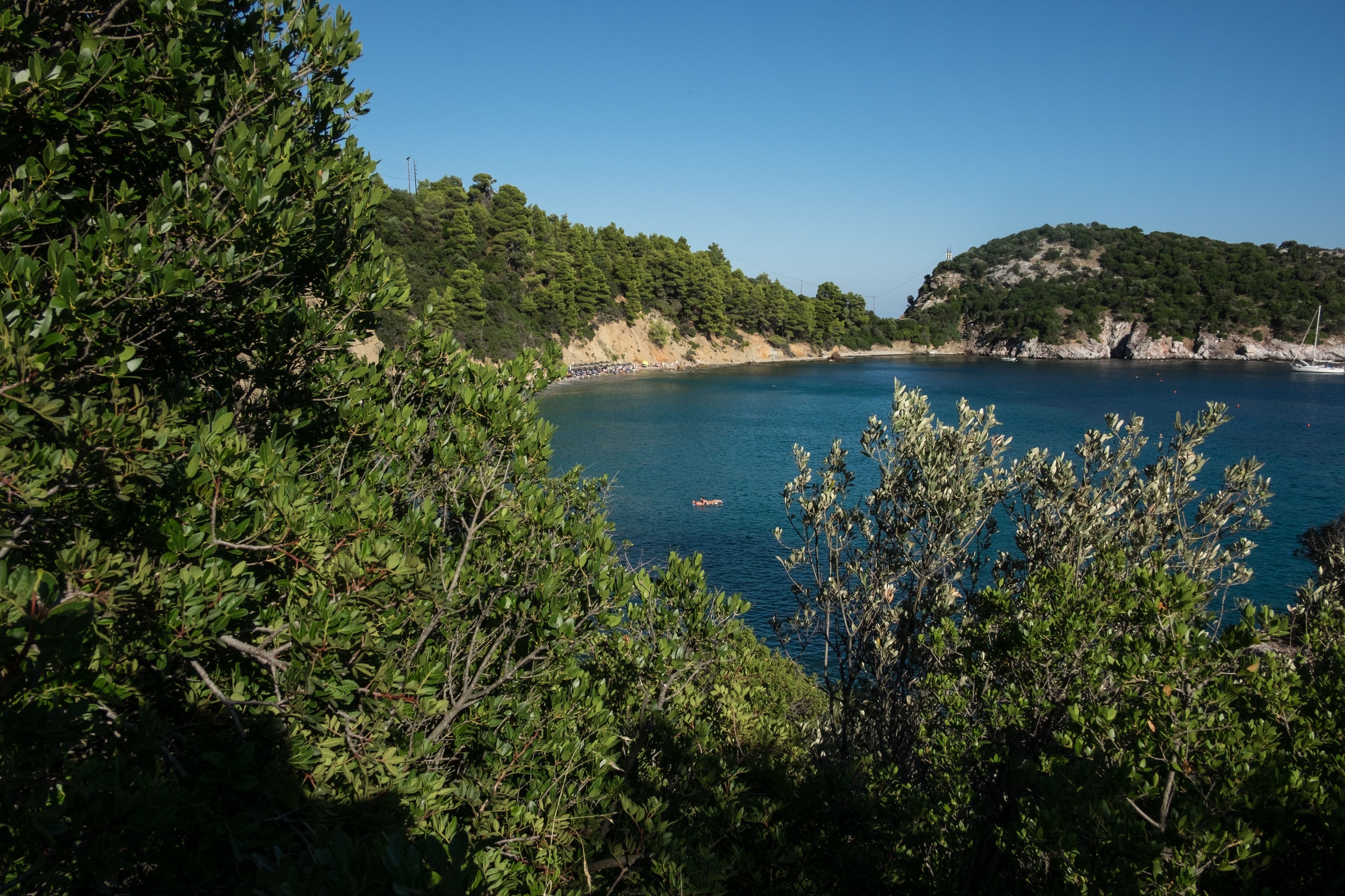 Swimmers at Stafilos beach in Skopelos island on August 27, 2015. / Λουώμενοι στην παραλία Στάφυλος στην Σκόπελο στις 27 Αυγούστου 2015.