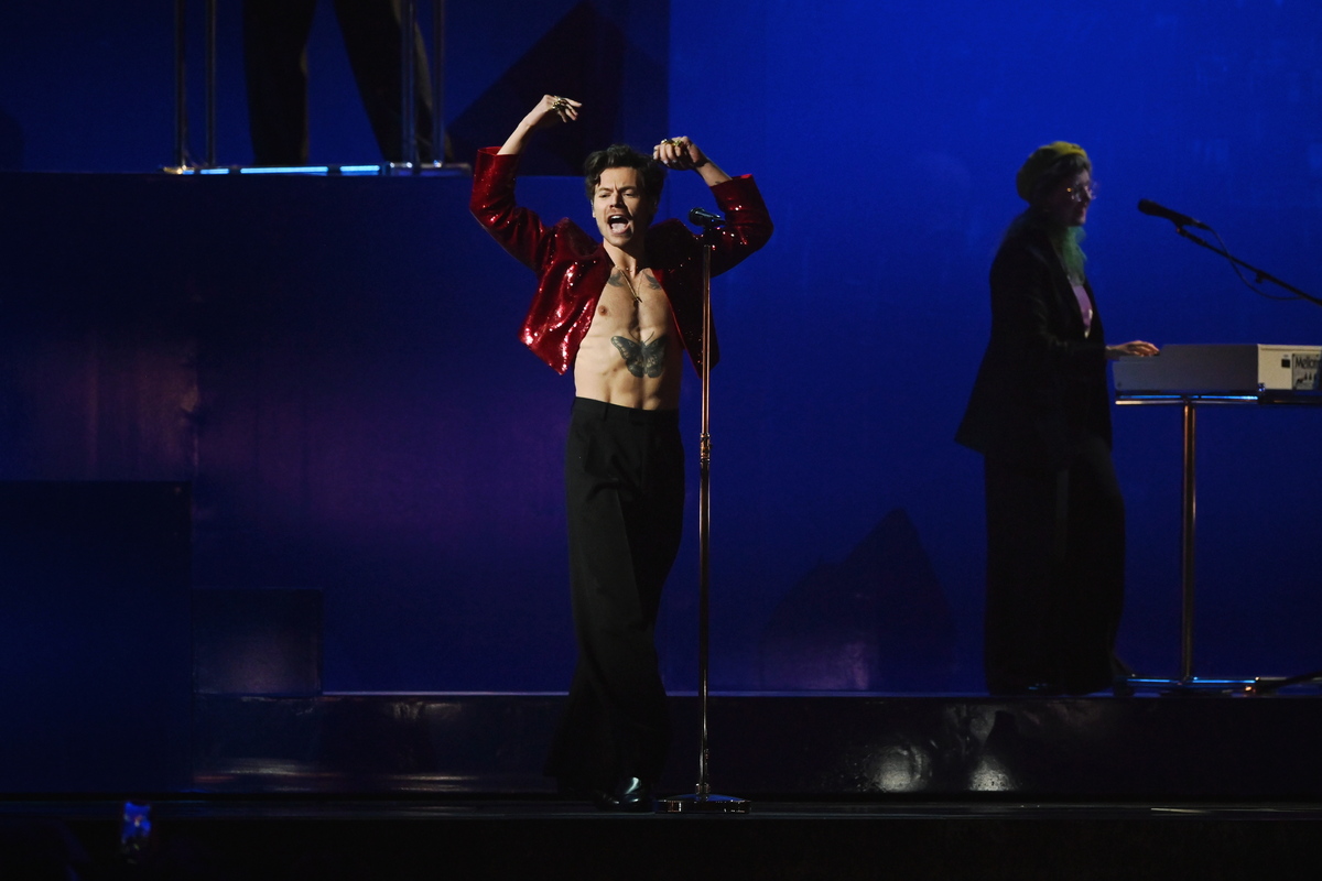 epa10461870 Harry Styles performs during the 2023 BRIT Awards ceremony at The O2 arena in London, Britain, 11 February 2023. The annual pop music awards are presented by the British Phonographic Industry (BPI). EPA/NEIL HALL