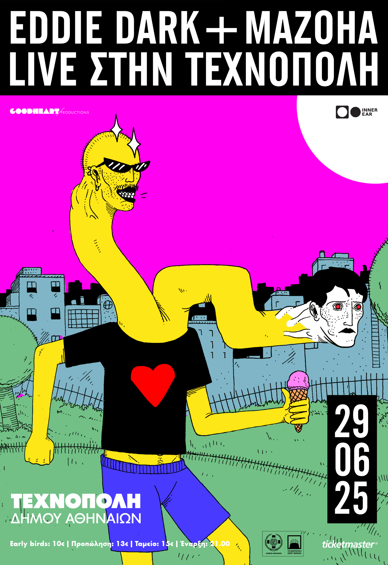 Για πολλούς το καλοκαίρι δεν είναι μόνο λιακάδα, διακοπές και κοκτεϊλάκια στην παραλία. Είναι εξωφρενική ζεστή, πλήξη και άγχος για τον χειμώνα που έρχεται. Μετά από μια σειρά sold out live, ο Eddie Dark και ο Mazoha ενώνουν ξανά τις δυνάμεις τους απέναντι στην υποχρεωτική καλοπέραση με ένα live βόμβα στην τσιμεντένια κόλαση που λέγεται Αθήνα, την Κυριακή 29 Ιουνίου, στην Τεχνόπολη Δήμου Αθηναίων.