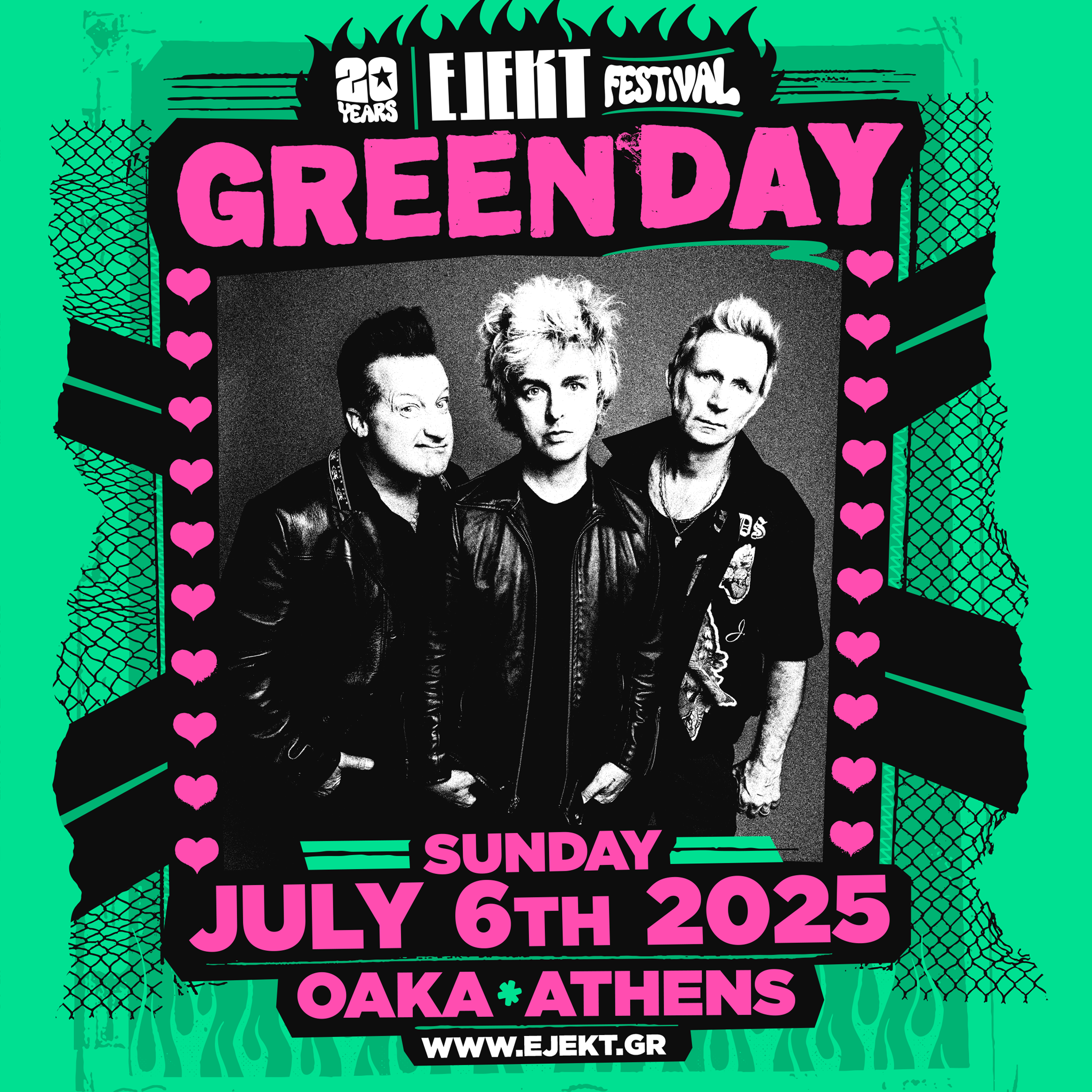 Για τα 20α του γενέθλια, το EJEKT Festival αποφάσισε να τραγουδήσει “Do you have the time to listen to me whine about nothing and everything all at once?”και να παρουσιάσει για πρώτη φορά στην Ελλάδα τους Green Day! Το μεγάλο απωθημένο του ελληνικού κοινού επιτέλους θα βρεθεί στην Αθήνα, την Κυριακή 6 Ιουλίου στο ΟΑΚΑ, για να ανέβει στη σκηνή του EJEKT Festival 2025!
