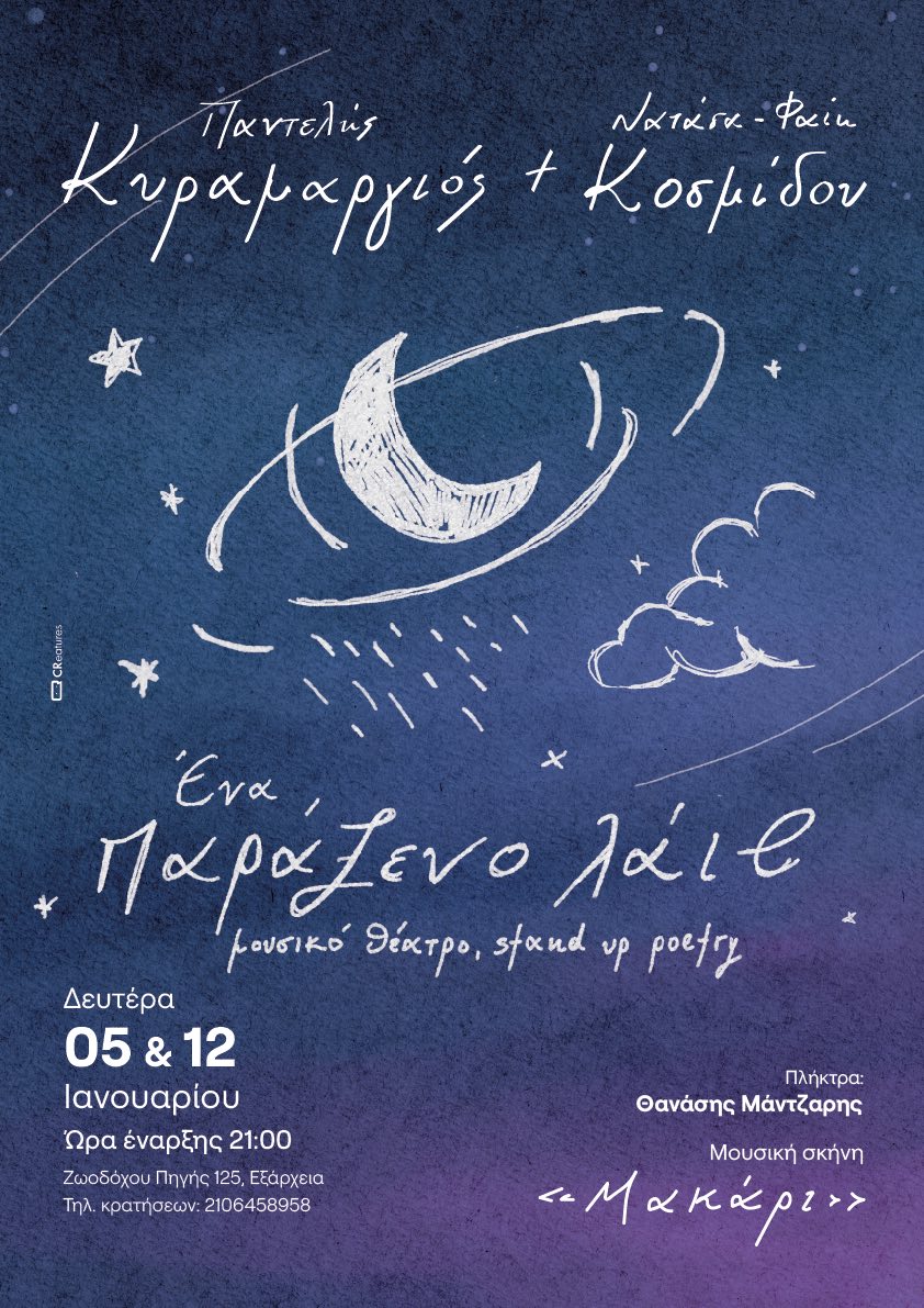 Ένα παράξενο live, δηλαδή δύο, θα λάβουν χώρα στο Μακάρι, στα Εξάρχεια, τις δύο πρώτες Δευτέρες της νέας χρονιάς (5 και 12 Ιανουαρίου). Άλλοι το λένε μουσικό θέατρο και κάποιοι άλλοι, κάπου αλλού, το λένε stand up poetry! Όλα αυτά από δύο καλλιτέχνες που θαύμαζαν ο ένας τον άλλον πριν γίνουν φίλοι. Συναντήθηκαν για πρώτη φορά στις εκδηλώσεις του Αντιφασιστικού Σεπτέμβρη το ‘19 και από τότε ο Παντελής έγραψε πολλά τραγούδια επηρεασμένος από τον λόγο της Νατάσας στα θέατρα και σε μικρά βίντεο χωρίς εκείνη να το γνωρίζει. Ύστερα εκείνη άκουγε τα τραγούδια του και έφτιαχνε ιστορίες για το πριν και το μετά χωρίς να του το πει. Μέχρι που το καλοκαίρι του ‘24 ο Παντελής έκανε ένα στόρι από την Αμοργό τραγουδώντας δύο χαζά στιχάκια. Αυτά τα στιχάκια βρήκαν τη Νατάσα στην Ικαρία. Τότε έπιασε το μολύβι της και τρεις σελίδες λέξεις απλώθηκαν στο τετράδιο της. Έτσι γεννήθηκε το κοινό τους «Παράξενο τραγούδι» για ένα «παράξενο κορίτσι».