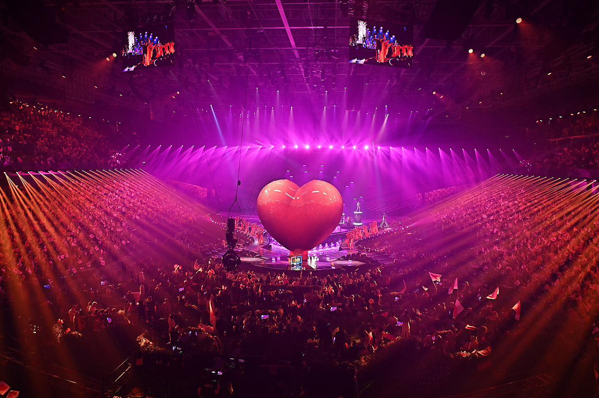 epaselect epa09947721 Lebanese-British singer-songwriter and co-host Mika performs during the Grand Final of the 66th annual Eurovision Song Contest (ESC 2022) in Turin, Italy, 14 May 2022. EPA/ALESSANDRO DI MARCO
