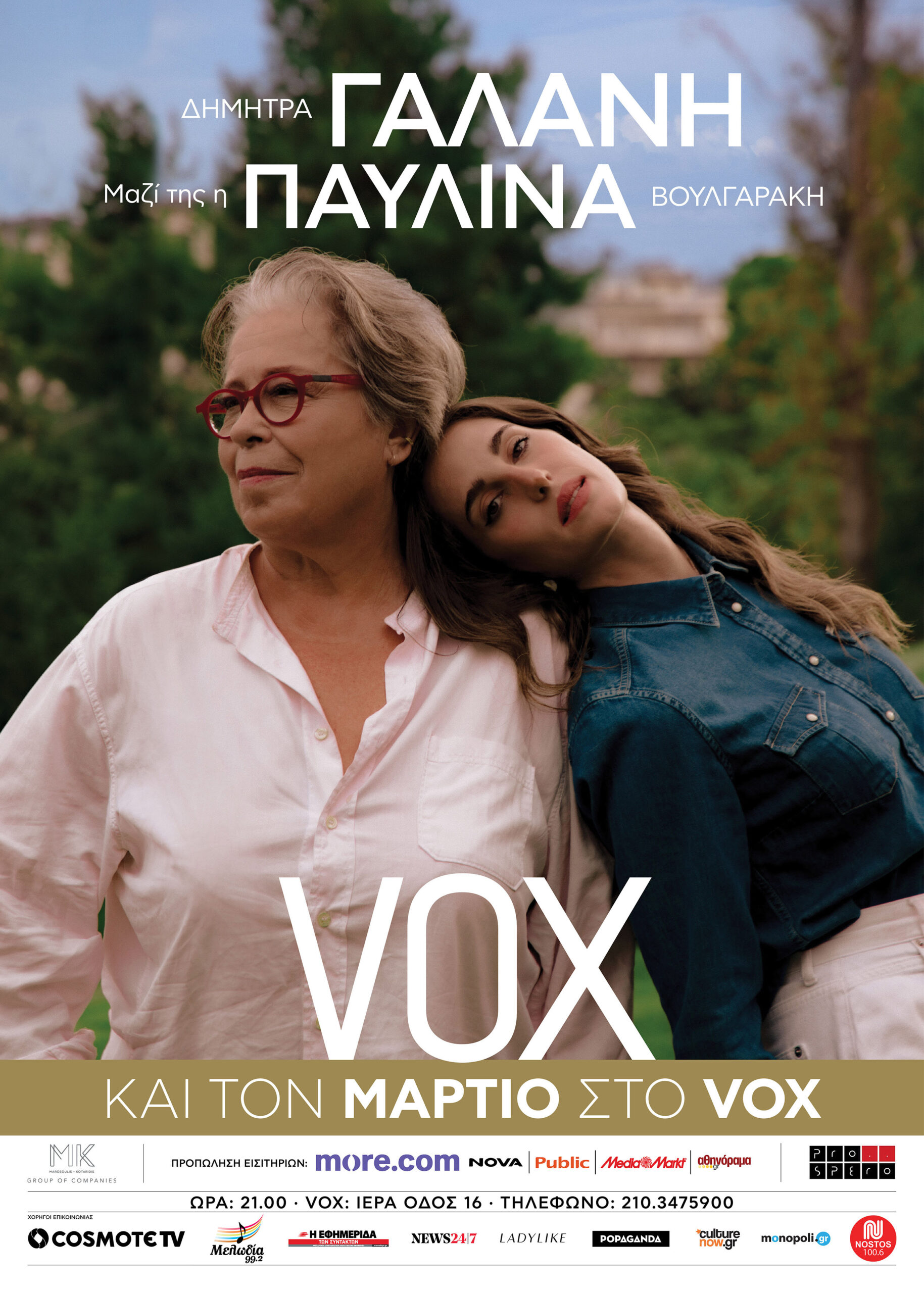Και τον Μάρτιο δίνουμε ραντεβού με την Δήμητρα Γαλάνη κάθε Τετάρτη στο VOX, εκεί που μαζί με την Παυλίνα Βουλγαράκη θα μπλέκουν τραγούδια και ιστορίες που θα μας περιέχουν. Ελάτε κοντά μας!