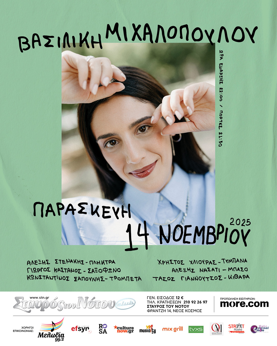 Η Βασιλική Μιχαλοπούλου ξεκινώντας την δεύτερη συνεχόμενη χρονιά εμφανίσεών της στον Σταυρό του Νότου Club με ένα live που ξεχώρισε, δίνει νέο ραντεβού στη σκηνή της Φραντζή και Θαρύπου την Παρασκευή 14 Νοεμβρίου!