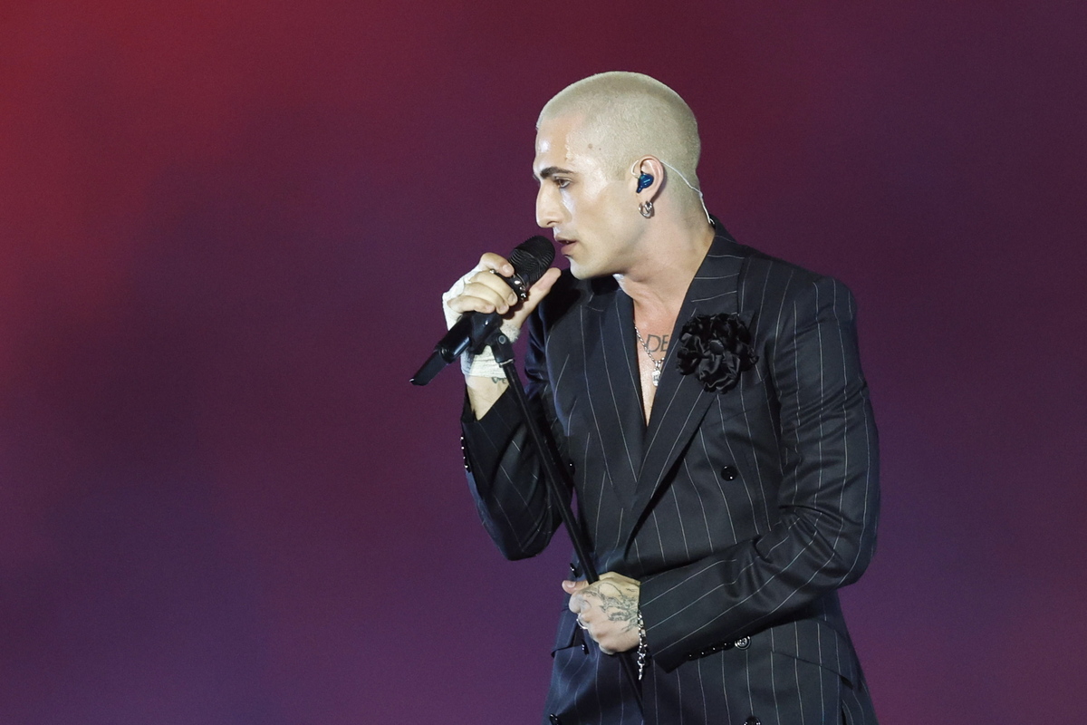 epa10758784 Vocalist Damiano David of Italian glam rock band Maneskin performs onstage during a concert at the Olympic Stadium in Rome, Italy, 20 July 2022. EPA/FABIO FRUSTACI ATTENTION EDITORS: THE IMAGE IS TO BE USED FOR EDITORIAL PURPOSES ONLY, SOLELY TO ILLUSTRATE NEWS REPORTING OR COMMENTARY ON FACTS DEPICTED IN THE IMAGE - EDITORIAL USE ONLY NO PHOTO BOOK NO EXHIBITION EDITORIAL USE ONLY/NO SALES