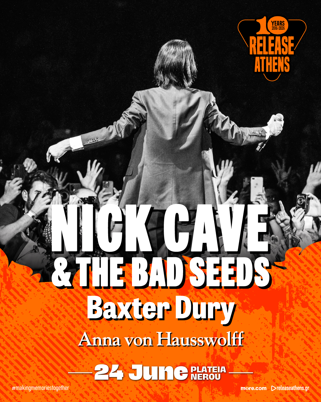 Το Release Athens 2026 υποδέχεται τον Baxter Dury και την Anna von Hausswolff, την Τετάρτη 24 Ιουνίου, στην Πλατεία Νερού. Ο φλεγματικός Βρετανός τραγουδοποιός επιστρέφει στην Αθήνα τρία χρόνια μετά την εξαιρετική του εμφάνιση στον ίδιο χώρο, ενώ η Σουηδή συνθέτρια και τραγουδίστρια πραγματοποιεί το πολυαναμενόμενο ντεμπούτο της στη χώρα μας. Μια βραδιά με έντονο προσωπικό στίγμα, σκοτεινή γοητεία και μοναδικό καλλιτεχνικό αποτύπωμα, που θα κορυφωθεί με την εμφάνιση των headliners Nick Cave & The Bad Seeds.