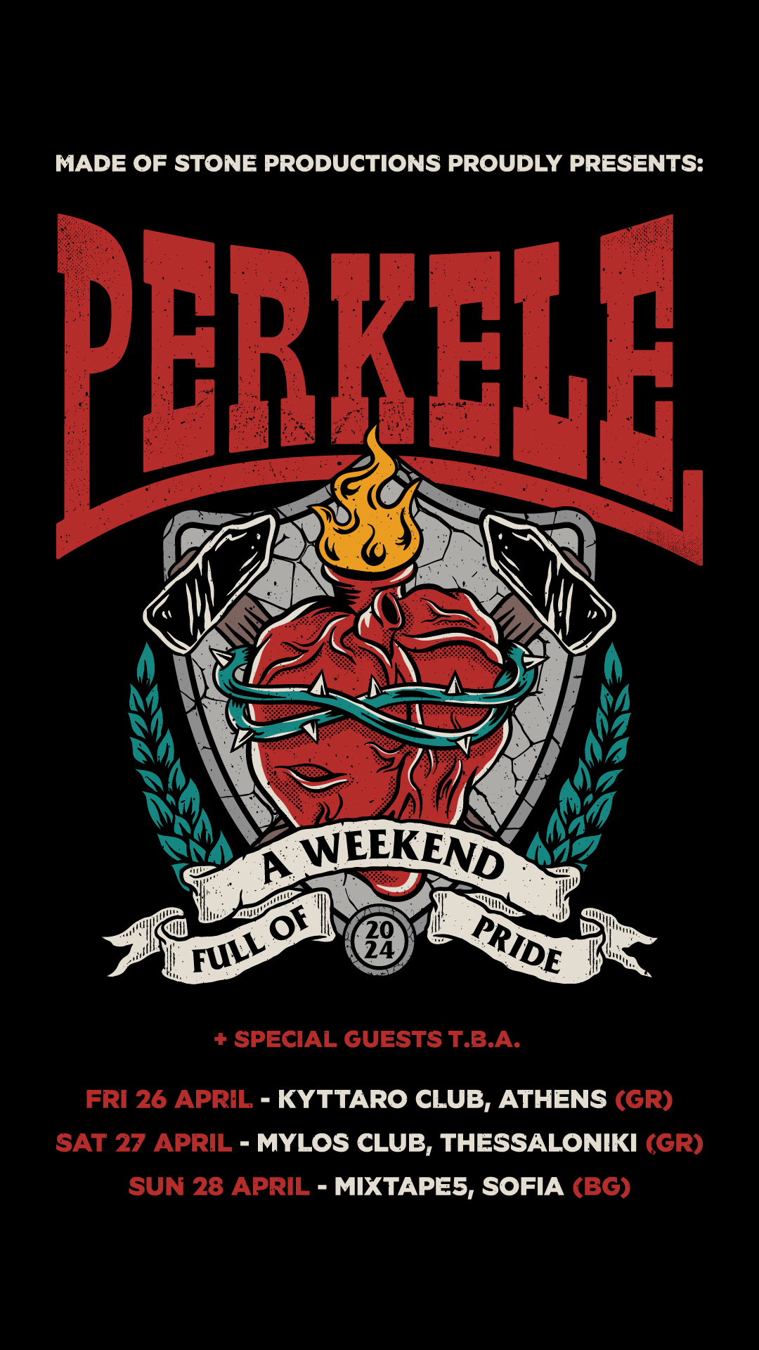 Οι Perkele σχηματίστηκαν το 1993 στο Gothenburg κι έκτοτε έχουν αναγνωριστεί σαν ένα από τα μεγαλύτερα ονόματα στην punk rock μουσική, περιοδεύοντας ακατάπαυστα με συμμετοχές ως headliners στα μεγαλύτερα ευρωπαϊκά festival του είδους και όχι μόνο, ενώ πιθανότατα είναι η μπάντα εκτός metal σκηνής με τους περισσότερους metalheads fans.