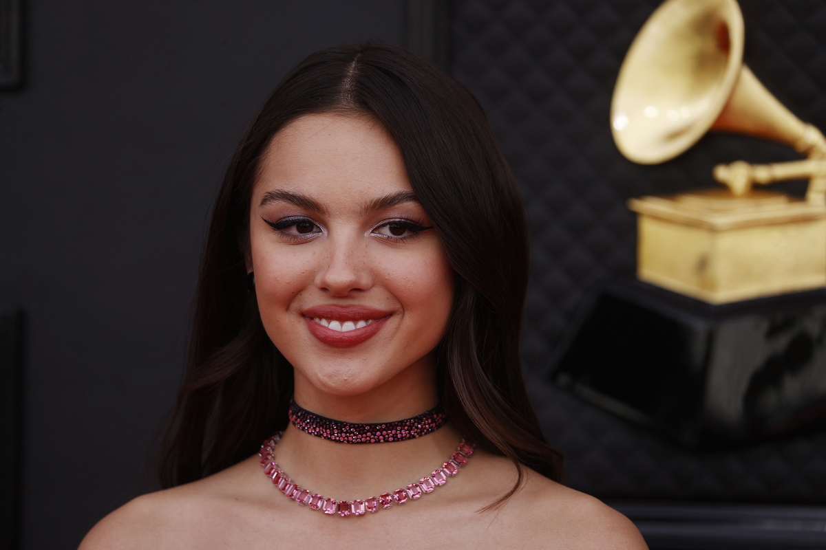 epa09868878 Olivia Rodrigo arrives for the 64th annual Grammy Awards at the MGM Grand Garden Arena in Las Vegas, Nevada, USA, 03 April 2022. EPA/DAVID SWANSON