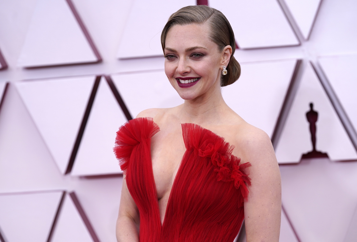 epa09160141 Amanda Seyfried arrives for the 93rd annual Academy Awards ceremony at Union Station in Los Angeles, California, USA, 25 April 2021. The Oscars are presented for outstanding individual or collective efforts in filmmaking in 24 categories. The Oscars happen two months later than originally planned, due to the impact of the coronavirus COVID-19 pandemic on cinema. EPA/Chris Pizzello / POOL *** Local Caption *** 55864152