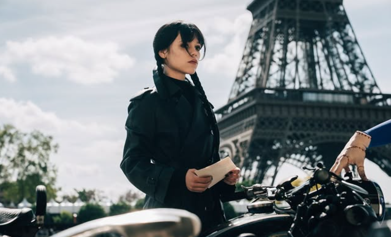 Στο στιγμιότυπο που αναρτήθηκε στα μέσα κοινωνικής δικτύωσης, η Wednesday εμφανίζεται να στέκεται δίπλα σε μια μοτοσικλέτα κάτω από τον Πύργο του Άιφελ, στο Παρίσι κρατώντας μερικά φύλλα χαρτού και έχοντας το χαρακτηριστικό της βλέμμα. Επίσης, διακρίνεται το «the thing» (Βίκτορ Ντορομπάντου), το ασώματο χέρι και αναπόσπαστο μέλος της οικογένειας ‘Ανταμς να βρίσκεται πάνω στη μοτοσικλέτα.