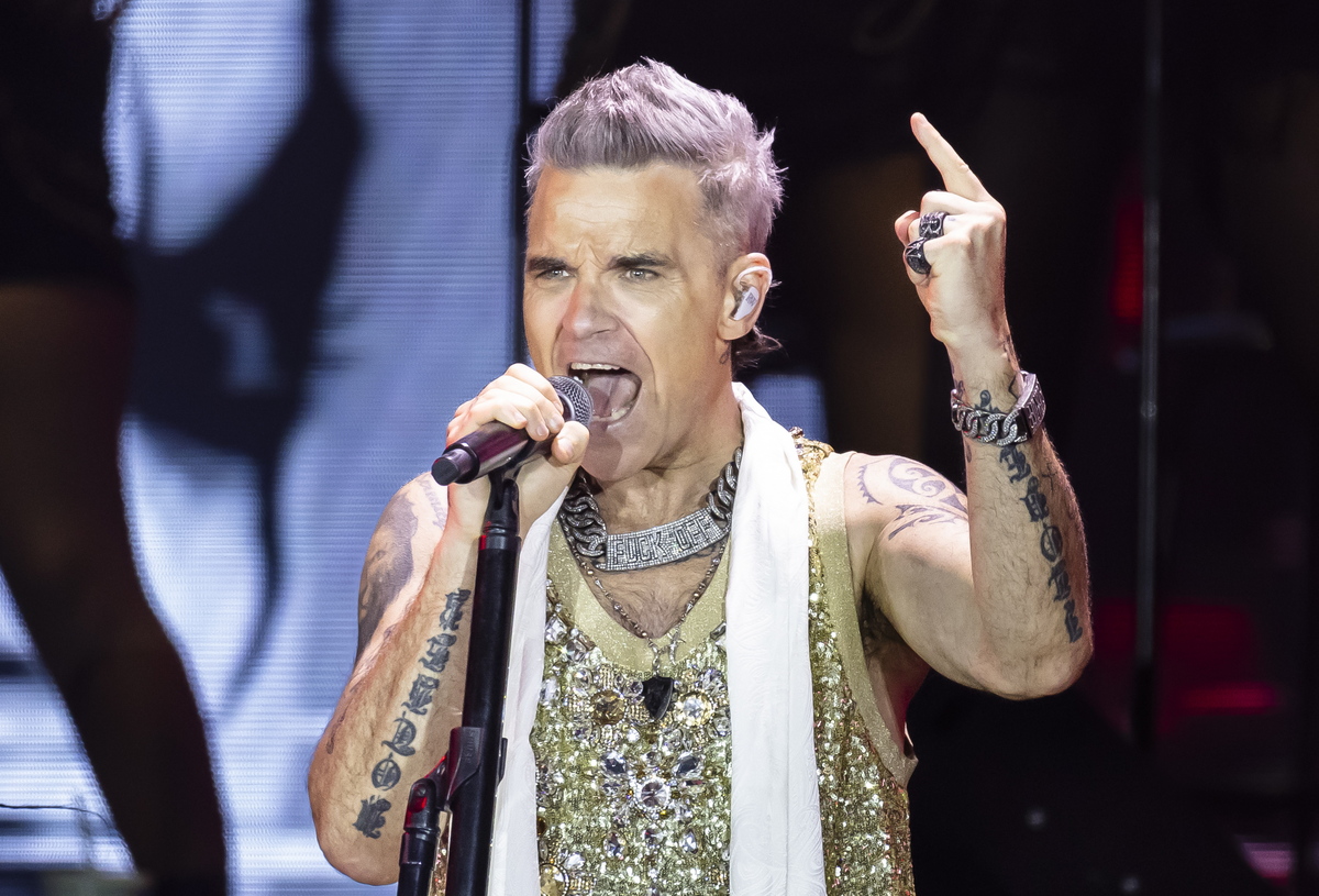 epaselect epa10814201 British singer Robbie Williams performs on stage during his show at the Zurich Openair music festival, in Glattbrugg outside Zurich, Switzerland, 22 August 2023. The Zurich Openair takes place from August 22 to 26. EPA/MICHAEL BUHOLZER