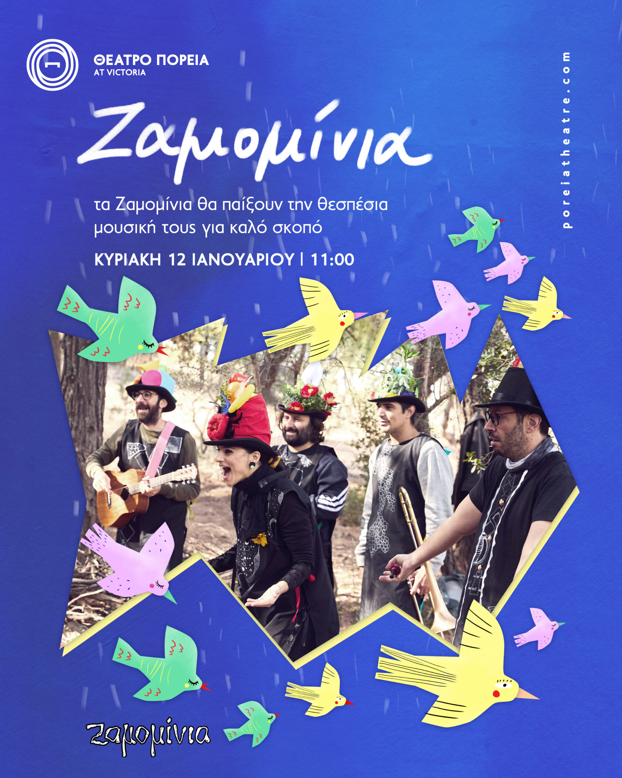 Την Κυριακή 12 Ιανουαρίου και ώρα 11:00 τα Ζαμομίνια θα παίξουν την θεσπέσια μουσική τους στο θέατρο Πορεία για καλό σκοπό.
