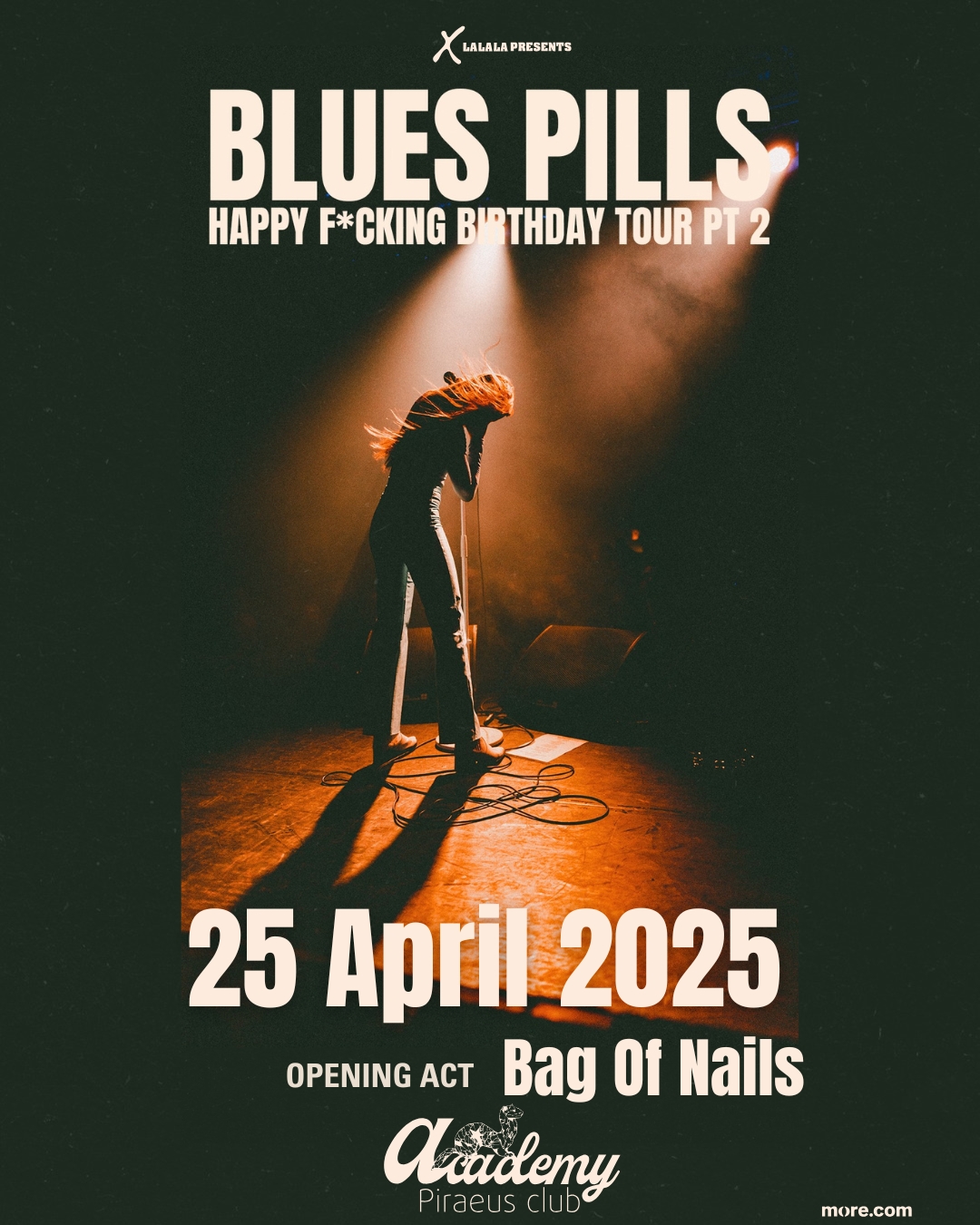 Οι Blues Pills, που έχουν χτίσει μια ιδιαίτερη σχέση με το ελληνικό κοινό, υπόσχονται να παρασύρουν το κοινό στη blues rock μυσταγωγία που μόνο αυτοί ξέρουν να δημιουργούν, με την Elin Larsson να μαγνητίζει με την υπέροχη φωνή της και τη μπάντα να προσφέρει μια εμφάνιση γεμάτη ενέργεια και μπόλικο συναίσθημα.