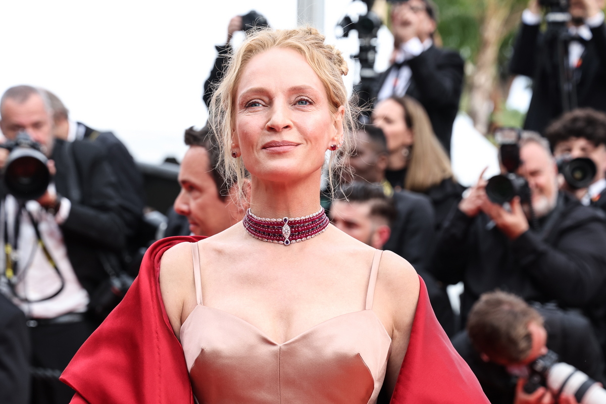 epa10632328 Uma Thurman arrives for the Opening Ceremony of the 76th annual Cannes Film Festival, in Cannes, France, 16 May 2023. The festival runs from 16 to 27 May. EPA/Mohammed Badra