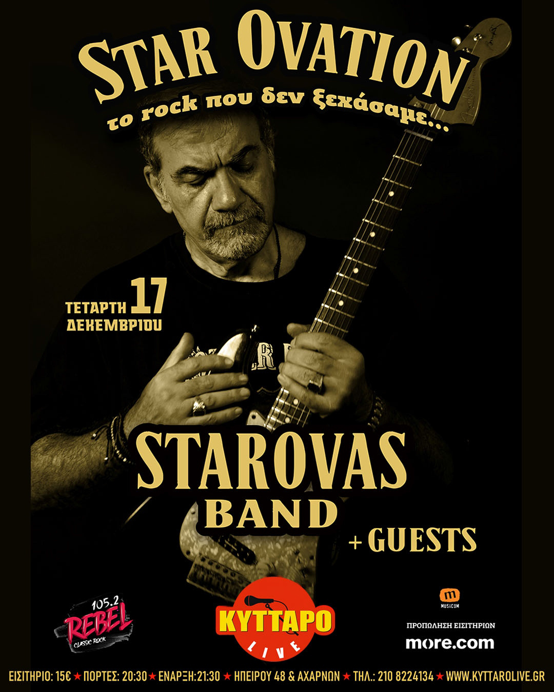 Η κιθάρα του Σταρόβα, οι φίλοι και συνοδοιπόροι του επί σκηνής, το χιούμορ και η συγκίνηση, συνθέτουν ένα live που δεν είναι απλώς συναυλία – είναι Rock εμπειρία, με την αυθεντικότητα και τη ζεστασιά που χαρακτηρίζει κάθε εμφάνισή του.