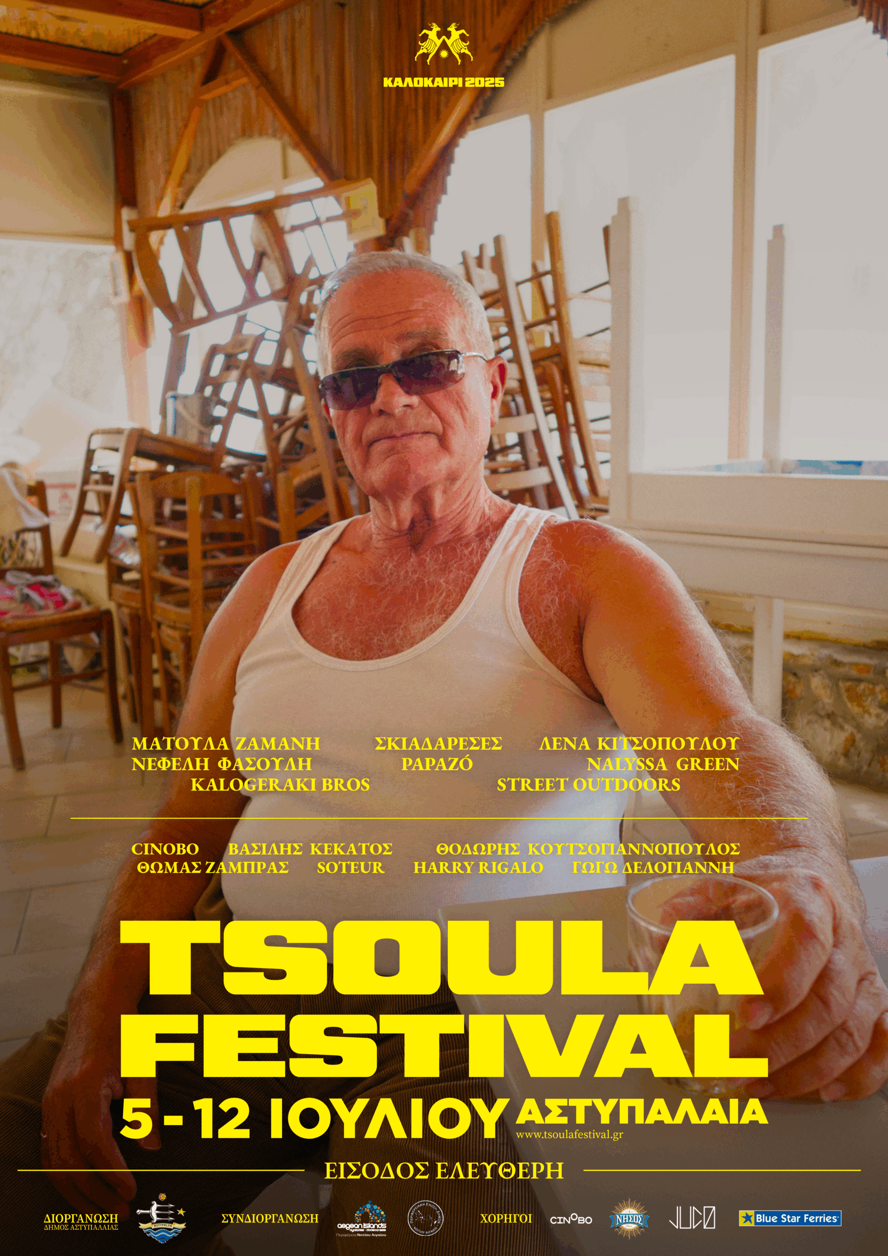 Το Tsoula Festival έρχεται από τις 5 έως τις 12 Ιουλίου στην ”Πεταλούδα του Αιγαίου” και απλώνεται σε όλο το νησί με συναυλίες, γλέντια και party στην μέση του πουθενά, τέχνες, εικαστικά και εγκαταστάσεις, θερινό σινεμά και workshop, φιλοδοξώντας να μετατρέψει ένα καλοκαιρινό φεστιβάλ σε εμπειρία.