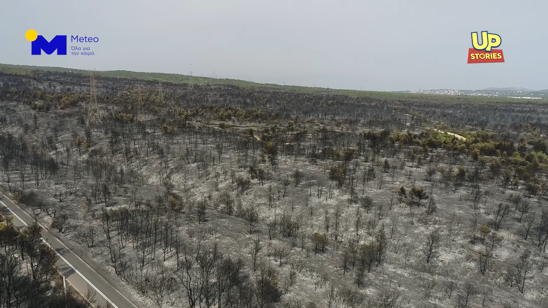 Πτήσεις με drone πάνω από την περιοχή της Βαρυμπόμπης πραγματοποίησε η ομάδα Up Stories σε συνεργασία με το Αστεροσκοπείο Αθηνών / meteo.gr την Τετάρτη 4 Αυγούστου 2021. Οι εικόνες που κατέγραψε το drone αποκαλύπτουν και δίνουν μια πρώτη εικόνα του μεγέθους της καταστροφής στην περιοχή με καμένες δασικές εκτάσεις και δεκάδες σπίτια.