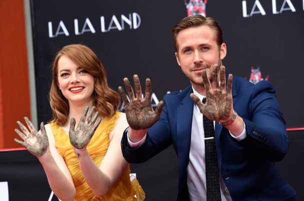 Οι ηθοποιοί ‘Εμα Στόουν και Ράιαν Γκόσλινγκ τιμήθηκαν στο Χόλιγουντ κατά τη διάρκεια τελετής αφήνοντας το αποτύπωμα του χεριού και του ποδιού τους πάνω σε τσιμεντένια πλακάκια κοντά στο TLC Chinese Theater.