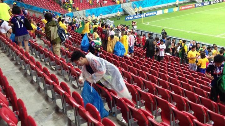 Οι φίλοι των “μπλε σαμουράι” που βρέθηκαν στη Mordovia Arena έκλεψαν λίγη από τη λάμψη των παικτών χάρη στην κίνησή τους μετά το τέλος της αναμέτρησης. Δεν βιάστηκαν να φύγουν από το γήπεδο, έμειναν στη θέσης τους για μερικά λεπτά. Όχι για να αποθεώσουν τους θριαμβευτές της ημέρας, αλλά για να μαζέψουν τα σκουπίδια που είχαν δημιουργήσει οι ίδιοι.