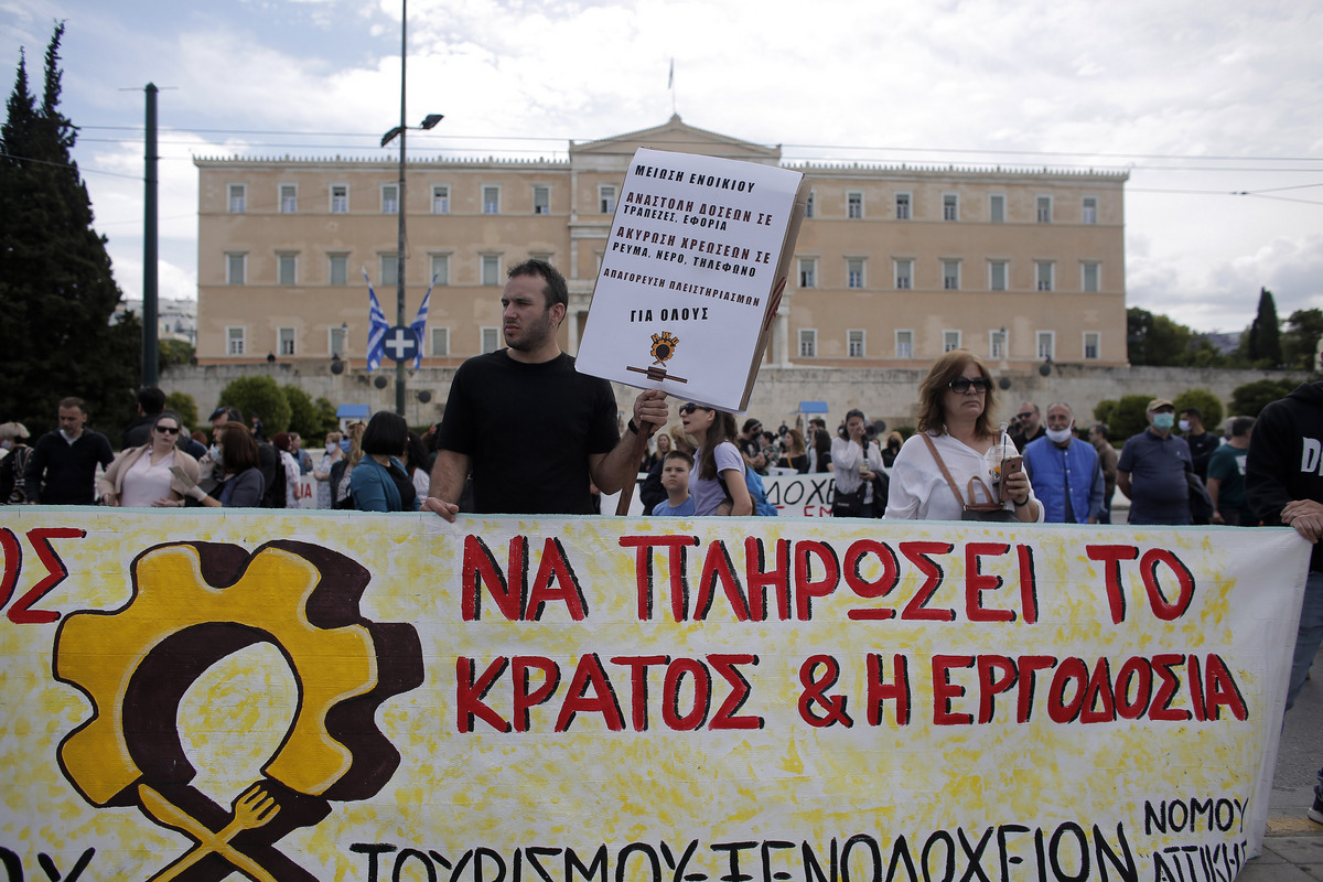 Μέλη του Συνδικάτου εργαζομένων στον Επισιτισμό - Τουρισμό, πραγματοποιούν συλλαλητήριο, την Πέμπτη 28 Μαΐου 20202, στο Σύνταγμα. ΑΠΕ- ΜΠΕ/ΑΠΕ- ΜΠΕ/ΚΩΣΤΑΣ ΤΣΙΡΩΝΗΣ