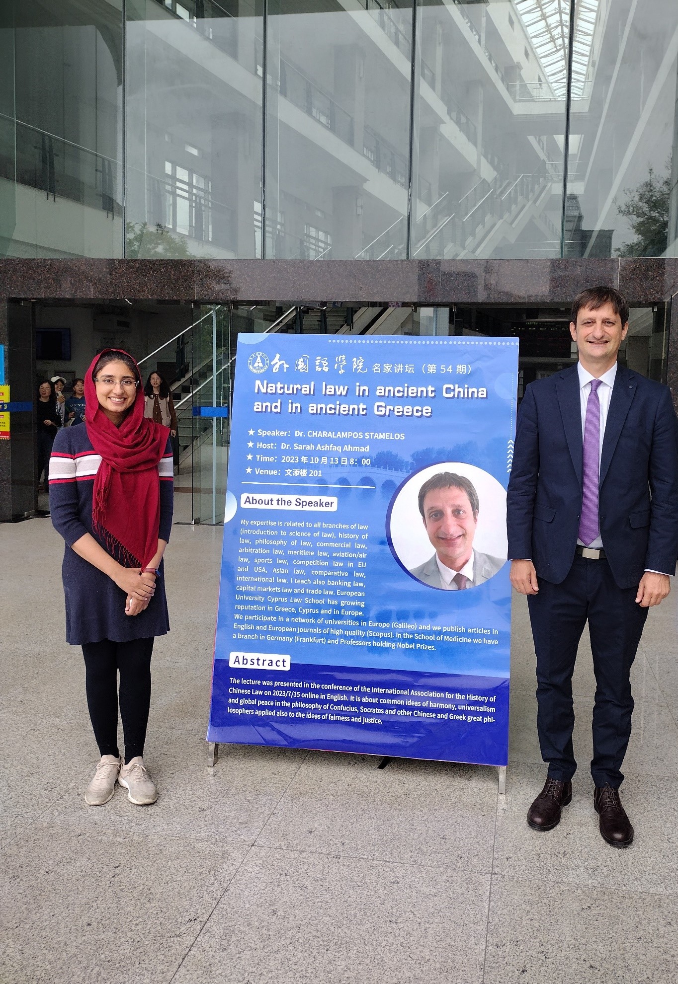 Αναδεικνύοντας την σημασία της διεθνούς συνεργασίας και της συνεχούς μάθησης, το Πανεπιστήμιο Zhongnan στην πόλη Γουχάν της Κίνας υποδέχτηκε τον Δρ. Χαράλαμπο Σταμέλο, Λέκτορα Νομικής Ευρωπαϊκού Πανεπιστημίου Κύπρου, ενισχύοντας έτσι τη διμερή συνεργασία και την ανταλλαγή επιστημονικών ιδεών στον τομέα του δικαίου. Ο Δρ. Σταμέλος, πραγματοποίησε δυο διαλέξεις στο πανεπιστήμιο, φέρνοντας νέες ιδέες και οπτικές στους φοιτητές και το διδακτικό προσωπικό.