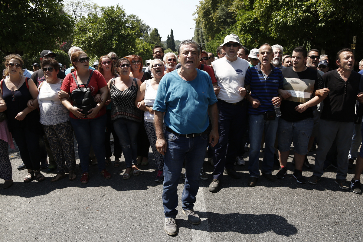 Μέλη της ΠΟΕ ΟΤΑ διαδηλώνουν έξω από το Μέγαρο Μαξίμου Τρίτη 27 Ιουνίου 2017. Ο πρωθυπουργός Αλέξης Τσίπρας συναντήθηκε με την εκτελεστική επιτροπή της ΠΟΕ ΟΤΑ στο Μέγαρο Μαξίμου, προκειμένου να βρεθεί λύση όσον αφορά τις διεκδικήσεις των εργαζομένων στον τομέα της καθαριότητας και να αποφευχθούν κίνδυνοι για τη δημόσια υγεία, λόγω της παρατεταμένης μη αποκομιδής απορριμμάτων και των πολύ υψηλών θερμοκρασιών που αναμένονται τις επόμενες μέρες. ΑΠΕ-ΜΠΕ/ΑΠΕ-ΜΠΕ/ΓΙΑΝΝΗΣ ΚΟΛΕΣΙΔΗΣ