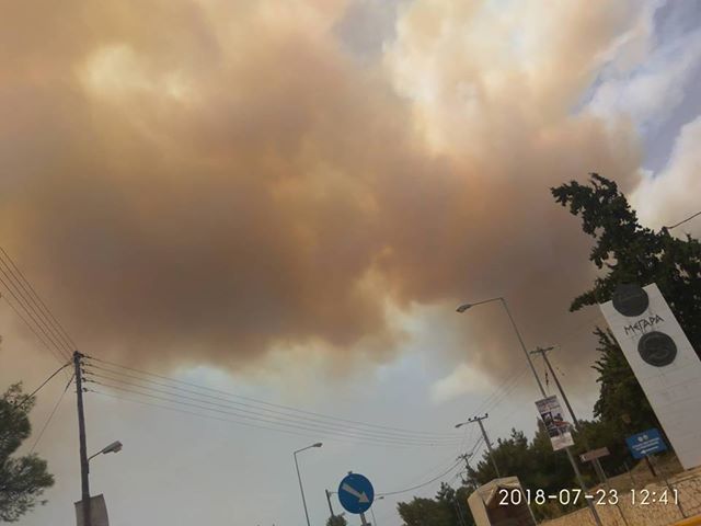 Σύμφωνα με την Πυροσβεστική Υπηρεσία, η φωτιά καίει σε δασική περιοχή και δεν απειλεί κατοικίες.