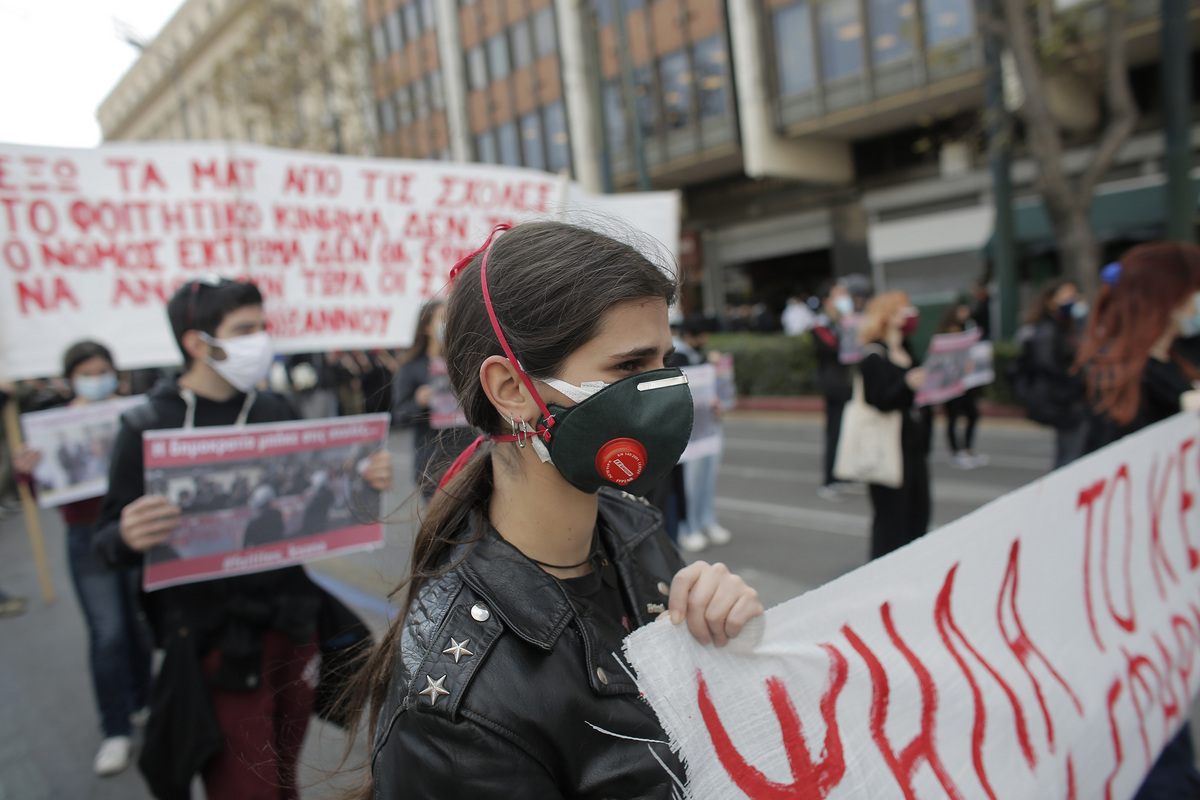 Φοιτητές παίρνουν μέρος σε πορεία διαμαρτυρίας ενάντια στο νέο νομοσχέδιο για τα πανεπιστημιακά ιδρύματα, Αθήνα Πέμπτη 25 Φεβρουαρίου 2021. ΑΠΕ-ΜΠΕ/ΑΠΕ-ΜΠΕ/ΓΙΑΝΝΗΣ ΚΟΛΕΣΙΔΗΣ