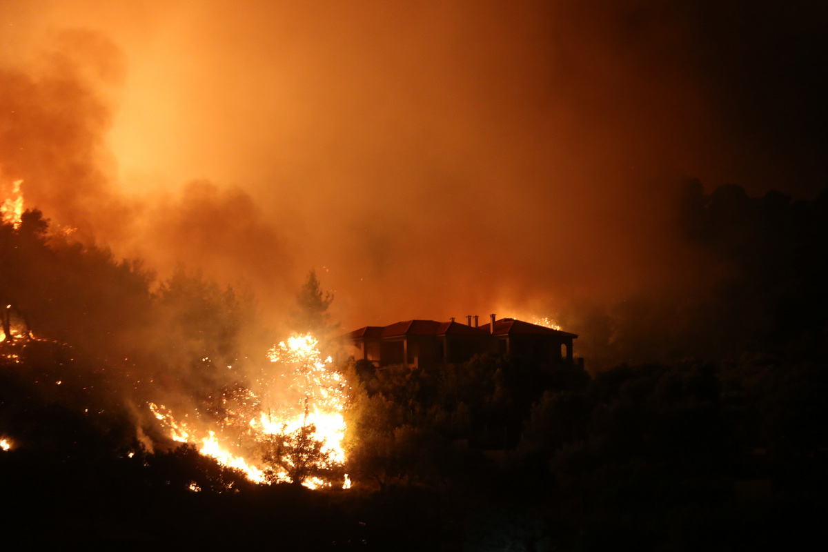 Πυροσβέστες παλεύουν με τις φλόγες στον Κάλαμο Αττικής Κυριακή 13 Αυγούστου 2017. ΑΠΕ-ΜΠΕ/ΑΠΕ-ΜΠΕ/ΟΡΕΣΤΗΣ ΠΑΝΑΓΙΩΤΟΥ