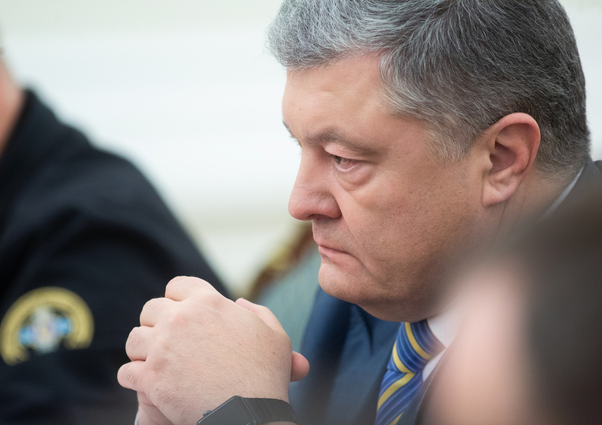 epa07190229 Ukrainian President Petro Poroshenko leads the National Security and Defence Council meeting in Kiev, Ukraine, 25 November 2018. Russia has seized three Ukrainian vessels amid their leaving the Kerch Strait; Ukrainian President Petro Poroshenko is gathering the Military Cabinet over the incident. The two small-sized `Berdiansk` and `Nikopol` armored artillery boats have come under enemy fire and are now dead in the water. The `Yany Kapu` tugboat has forcibly been stopped. The vessels have been captured by special forces of the Russian Federation, the press service of Ukraine`s Navy said on Facebook on Sunday evening. The Ukrainian Navy also reported the number of the Ukrainian servicemen wounded in the incident grew to two persons as Ukrainian media report. EPA/MYKHAILO MARKIV / POOL