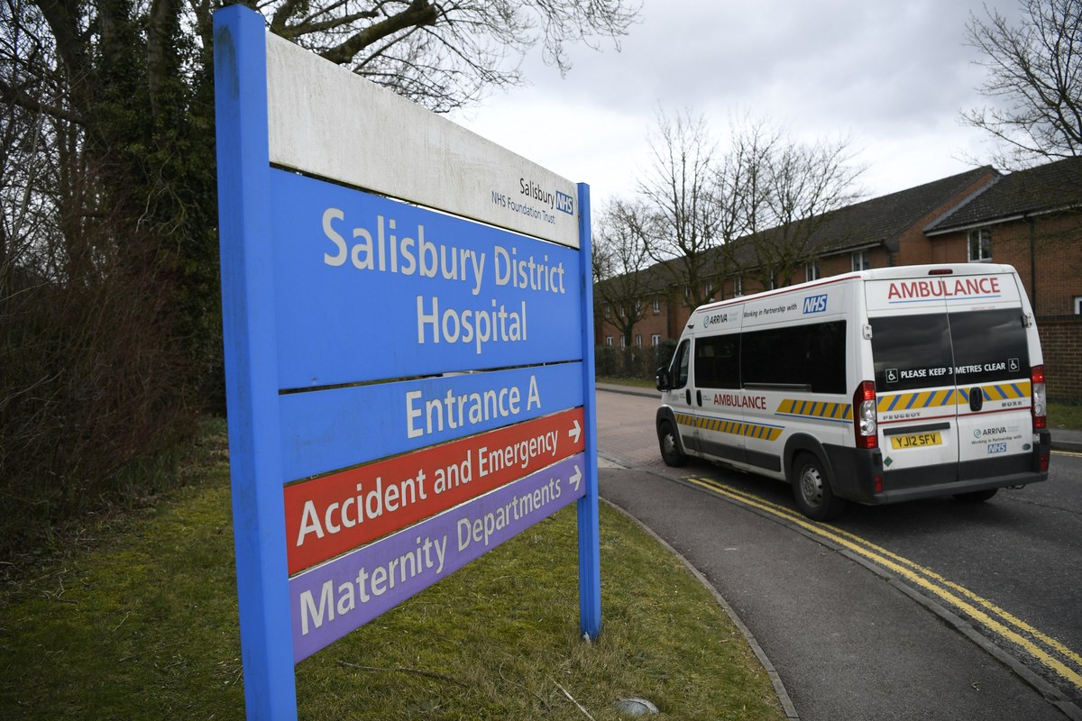 epa06584855 An ambulance passes a sign for Salisbury District Hospital in Salisbury, Britain 06 March 2018. Media reports state that former Russian spy Sergei Skripal and daughter Yulia Skripal is in intensive care after allegedly being exposure to an unknown substance as they sat on a bench in the centre of Salisbury, southern England. Skripal, a former Russian intelligence officer, who had been sentenced to 13 years in prison on charges of spying for the the Britain and later in 2010 was exchanged in a spy swap. Sergei Skripal and his daughter Yulia Skripal were found unconscious on a bench in The Maltings shopping centre Salisbury. Police sealed the bench and closed a restaurant, in which he was seen eating. Both remain in a critical condition in intensive care. EPA/NEIL HALL