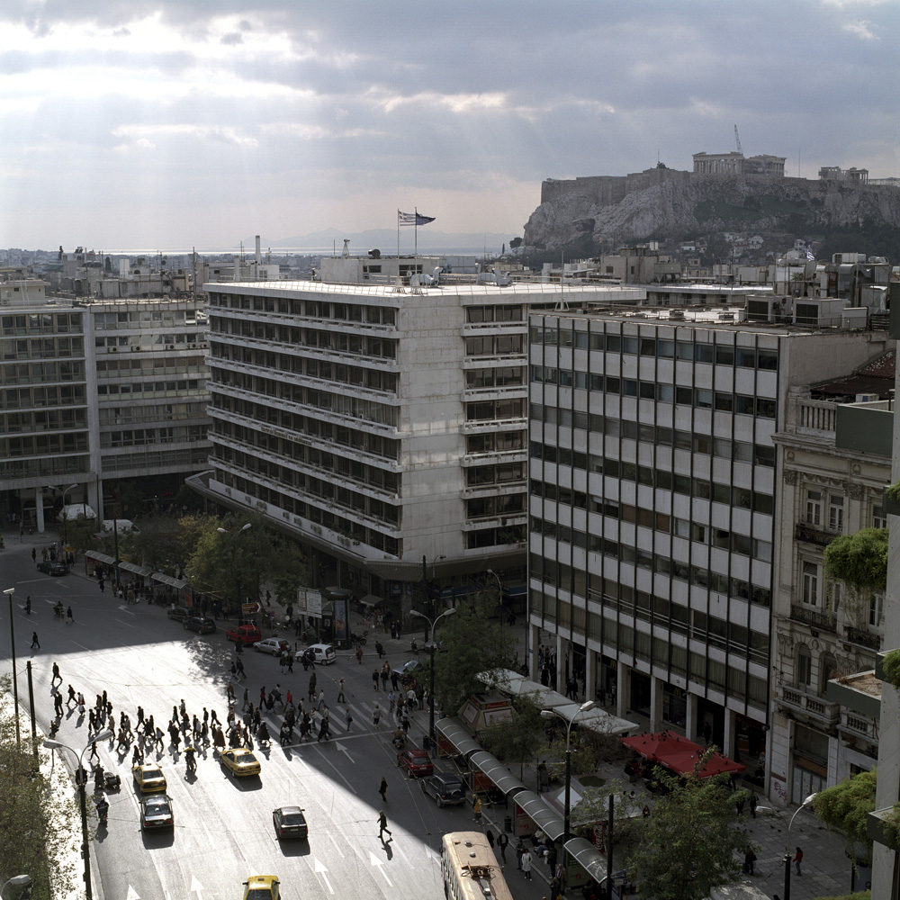 Θέα στην πλατεία Συντάγματος απο το ξενοδοχείο Athens Plaza, Φεβρουάριος 2004 (φωτ: Γεράσιμος Δομένικος)