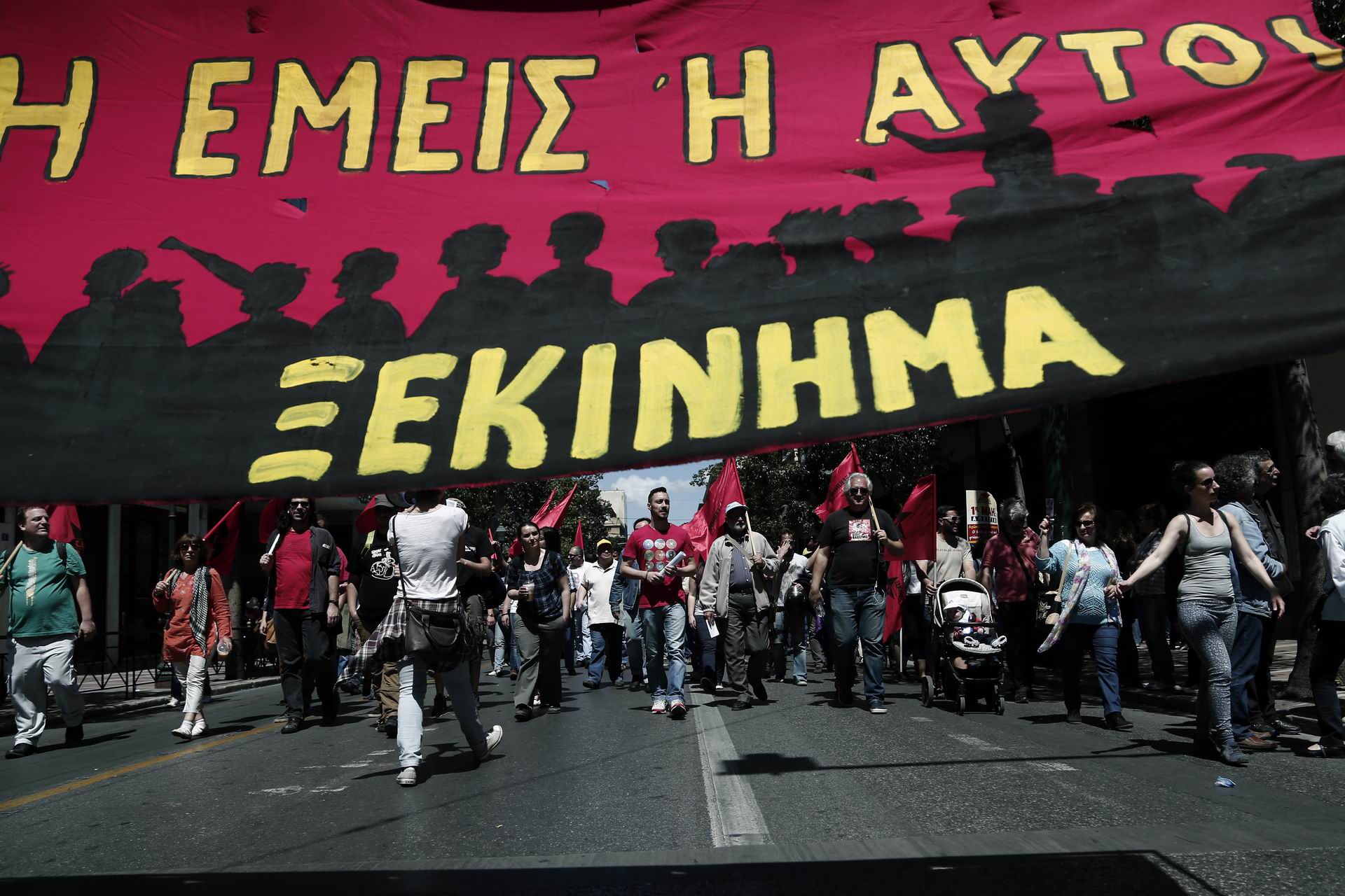 Συγκέντρωση στην πλατεία Κλαυθμώνος της ΓΣΕΕ-ΑΔΕΔΥ και του Εργατικού Κέντρου Αθήνας, για την Εργατική Πρωτομαγιά, στην Αθήνα την Παρασκευή 1η Μαΐου 2015.