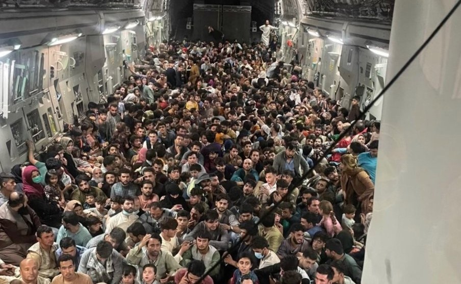 Η παρακάτω απίστευτη φωτογραφία δείχνει περίπου 640 Αφγανούς πρόσφυγες στριμωγμένους μέσα σε στρατιωτικό φορτηγό αεροπλάνο της Πολεμικής Αεροπορίας των ΗΠΑ που αναχώρησε από την Καμπούλ χθες Δευτέρα.