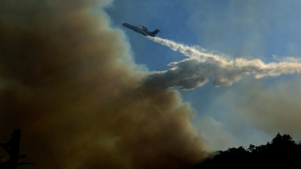 Πυροσβεστικό αεροσκάφος συμμετέχει στην προσπάθεια κατάσβεσης δασικής πυρκαγιάς που ξέσπασε σε δύσβατη περιοχή προς τη θέση Μάνα Κοκκαρίου στους Βουρλιώτες Σάμου, Πέμπτη 15 Ιουλίου 2021. Οι ισχυροί άνεμοι συνέτειναν στη δημιουργία ισχυρού μετώπου στην περιοχή που είναι δύσκολα προσεγγίσιμη από τις επίγειες πυροσβεστικές δυνάμεις. Προληπτικά, μια και η πυρκαγιά δεν απειλεί κατοικημένες περιοχές, εκκενώθηκαν δύο ξενοδοχεία και τρείς κατοικίες στη περιοχή Άγιος Φανούριος. Από αέρος επιχειρούν αεροσκάφη και ελικόπτερα, ωστόσο η φορά των ανέμων ανησυχεί ιδιαίτερα την Πυροσβεστική Υπηρεσία για την εξέλιξη της πυρκαγιάς. Με εντολή του αρχηγού του Πυροσβεστικού Σώματος, αντιστράτηγου Στέφανου Κολοκούρη, κλιμάκιο της Αντιμετώπισης Εγκλημάτων Εμπρησμού (ΚΑΕΕ) βρίσκεται στη Σάμο για τη διερεύνηση των αιτιών της πυρκαγιάς. ΑΠΕ-ΜΠΕ/ΑΠΕ-ΜΠΕ/ΒΙΟΛΕΤΑ ΖΑΒΟΥΔΑΚΗ