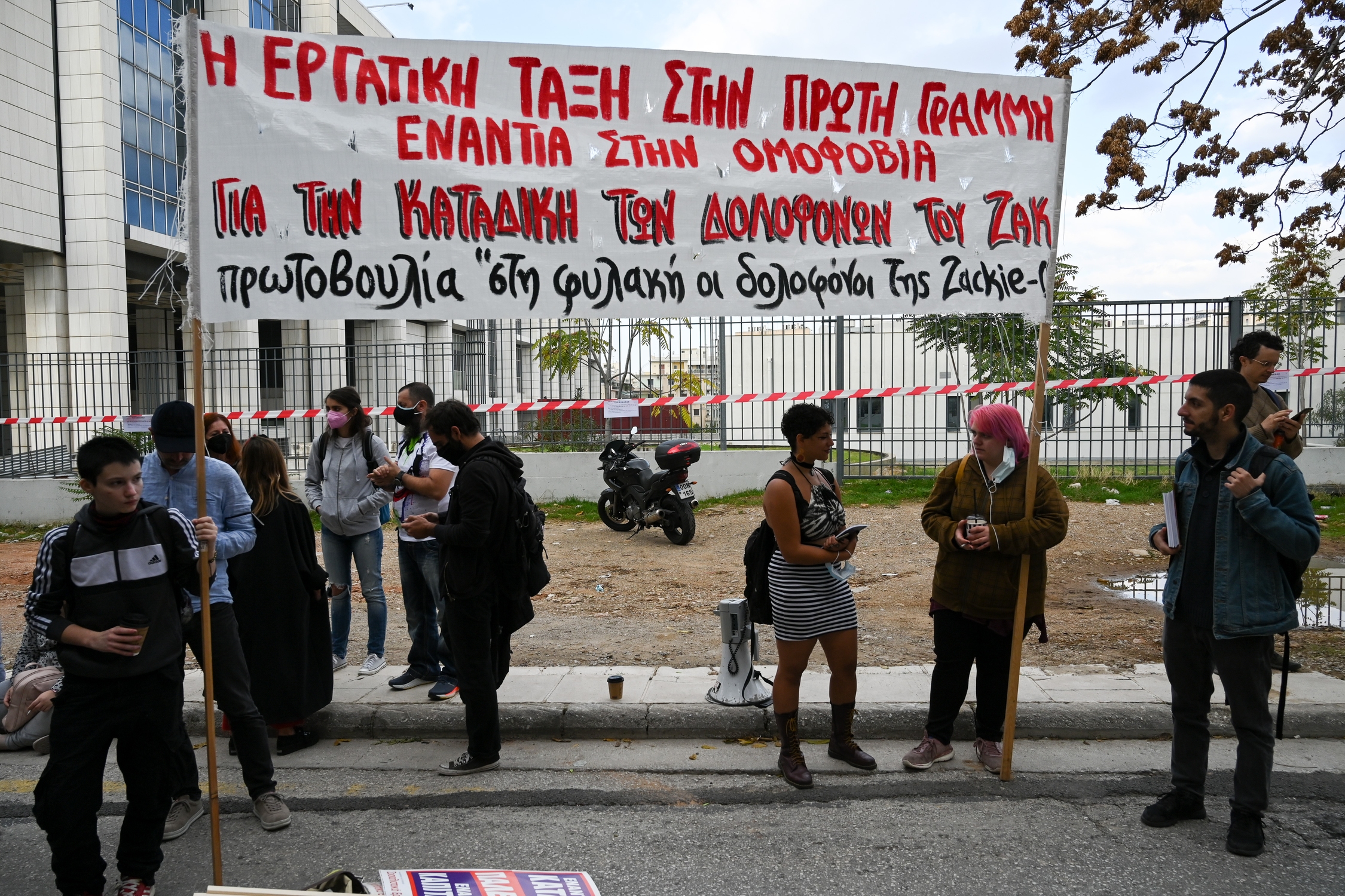solidarity rally outside the Athens Court of First Instance, at the beginning of the trial for the murder of Zak Kostopoulos in September 2018 on Gladstonos Street, Athens, Greece on October 20, 2021. / Συγκέντρωση αλληλεγγύης συλλογικοτήτων, έξω απο το πρωτοδικείο Αθηνών, κατά την έναρξη της δίκης για την δολοφονια του Ζακ Κωστόπουλου τον Σεπτέμβριο του 2018 στην οδό Γλάδστωνος, Αθήνα, 20 Οκτωβρίου 2021.