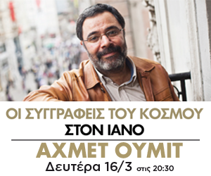 Στο πλαίσιο του κύκλου εκδηλώσεων «Οι συγγραφείς του κόσμου στον ΙΑΝΟ», ο συγγραφέας Θεόδωρος Γρηγοριάδης συνομιλεί με τον Τούρκο συγγραφέα Αχμέτ Ουμίτ για τη ζωή του, το έργο του, τη λογοτεχνία αλλά και θέματα που άπτονται της επικαιρότητας, με αφορμή το νέο του βιβλίο με τίτλο Έγκλημα στο Πέρα, που κυκλοφορεί από τις εκδόσεις Πατάκη, σε μετάφραση Θάνου Ζαράγκαλη.