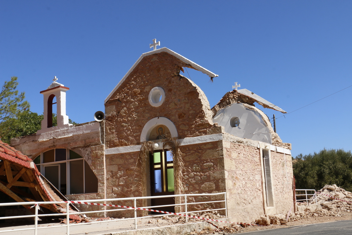 Ç åêêëçóßá Áãßá ÖùôåéíÞ óôá Ñïõóóï÷þñéá ôïõ äÞìïõ Áñêáëï÷ùñßïõ õðÝóôç óïâáñÝò æçìéÝò áðü ôçí éó÷õñÞ óåéóìéêÞ äüíçóç óôçí áíáôïëéêÞ ÊñÞôç, ôç ÄåõôÝñá 27 Óåðôåìâñßïõ 2021. ¸íáò íåêñüò êáé åííÝá ôñáõìáôßåò åßíáé ï ìÝ÷ñé óôéãìÞò ôñáãéêüò áðïëïãéóìüò ôïõ éó÷õñïý óåéóìïý ðïõ óçìåéþèçêå ðåñßðïõ óôéò 9:15 óôçí áíáôïëéêÞ ÊñÞôç. Ôï ìÝãåèïò ôçò óåéóìéêÞò äüíçóçò, óýìöùíá ìå ôï Ãåùäõíáìéêü Éíóôéôïýôï ôïõ Åèíéêïý Áóôåñïóêïðåßïõ Áèçíþí Þôáí 5,8 Ñß÷ôåñ ìå åðßêåíôñï 23 ÷éëéüìåôñá âïñåéïäõôéêÜ ôçò ¢ñâçò. Ôï åóôéáêü âÜèïò åíôïðßæåôáé óôá 10 ÷éëéüìåôñá, åíþ ï óåéóìüò Ýãéíå éäéáßôåñá áéóèçôüò óôï ÇñÜêëåéï. ÁíáóôÜôùóç åðéêñÜôçóå óôçí áíáôïëéêÞ ÊñÞôç, ìåôÜ ôç óåéóìéêÞ äüíçóç. Óýìöùíá ìå ôïí äÞìáñ÷ï Ìéíþá ÐåäéÜäïò, Ìáíþëç ÖñáãêÜêç, ïé êáôáóôñïöÝò óôçí åõñýôåñç ðåñéï÷Þ ôïõ Áñêáëï÷ùñßïõ åßíáé óçìáíôéêÝò êáé áöïñïýí êôßóìáôá, íáïýò áëëÜ êáé óôýëïõò ôçò ÄÅÇ ðïõ Ý÷ïõí õðï÷ùñÞóåé. Ôçò óåéóìéêÞò äüíçóçò ôùí 5,8 Ñß÷ôåñ Ý÷ïõí áêïëïõèÞóåé êáé Üëëåò óåéóìéêÝò äïíÞóåéò, Ýíôáóçò 4,3 Ñß÷ôåñ áëëÜ êáé ìéêñüôåñåò. ÓçìáíôéêÝò æçìéÝò óå äßêôõá ýäñåõóçò áëëÜ êáé êôßóìáôá êáôáãñÜöïíôáé, óýìöùíá ìå ôïí äÞìáñ÷ï Áñ÷áíþí Áóôåñïõóßùí, Ìáíþëç ÊïêïóÜëç, óôçí åõñýôåñç ðåñéï÷Þ ôçò äéïéêçôéêÞò ðåñéöÝñåéÜò ôïõ. Ôá ó÷ïëåßá Ý÷ïõí åêêåíùèåß, åíþ Þäç Ý÷åé îåêéíÞóåé Ýëå÷ãïò ãéá ôçí êáôÜóôáóç ôùí êôéñßùí ôùí ó÷ïëéêþí ìïíÜäùí. Åðß ðïäüò âñßóêïíôáé üëåò ïé Áñ÷Ýò, åóôéÜæïíôáò óôçí ðåñéï÷Þ ôïõ Áñêáëï÷ùñßïõ üðïõ êáôáãñÜöïíôáé óçìáíôéêÝò æçìéÝò êáé êáôáññåýóåéò íáþí. ÁÐÅ ÌÐÅ/ÁÐÅ ÌÐÅ/ÍÉÊÏÓ ×ÁËÊÉÁÄÁÊÇÓ